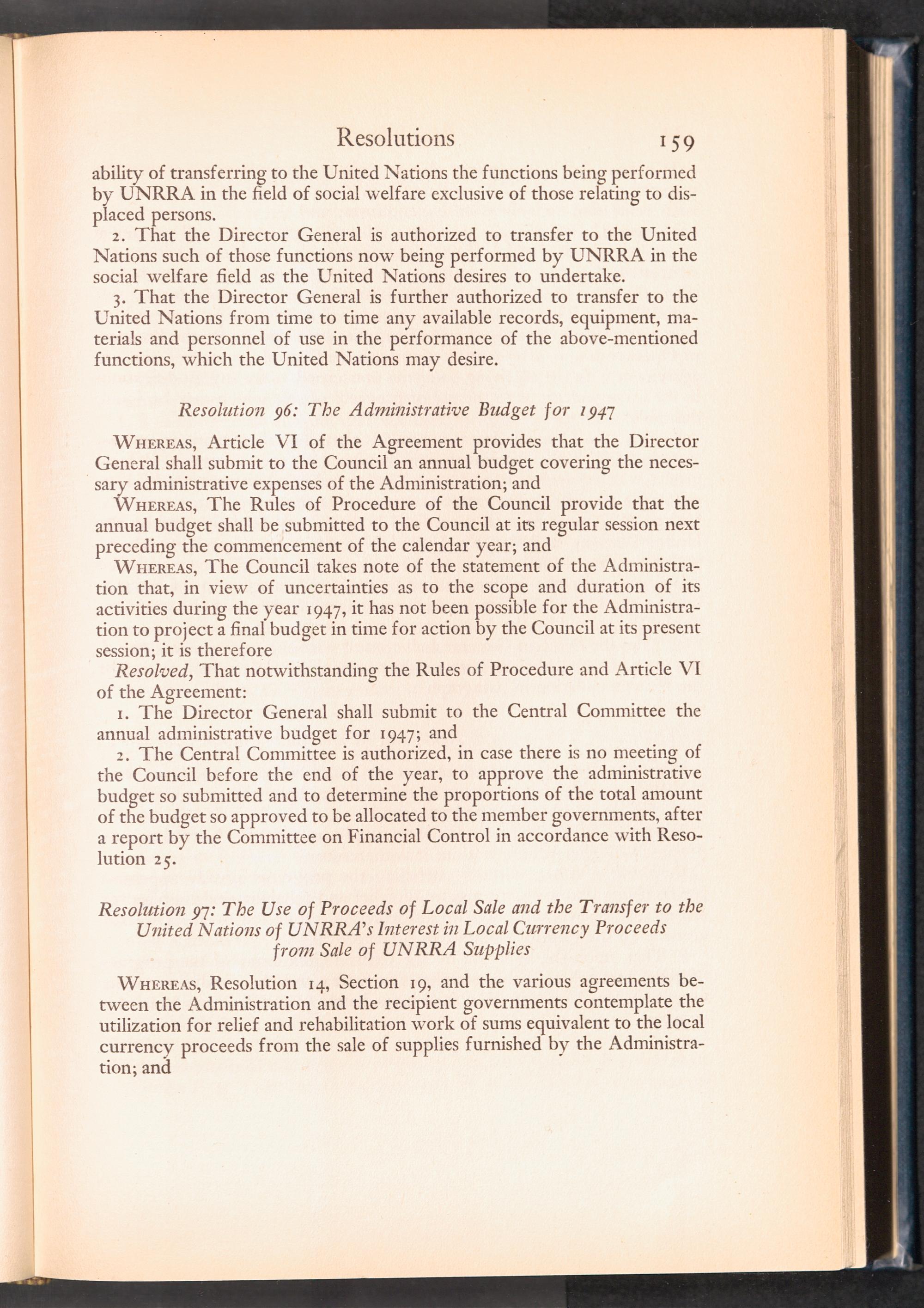 UNRRA Vol. III. UNRRA Appendices Appendix Four: Resolutions