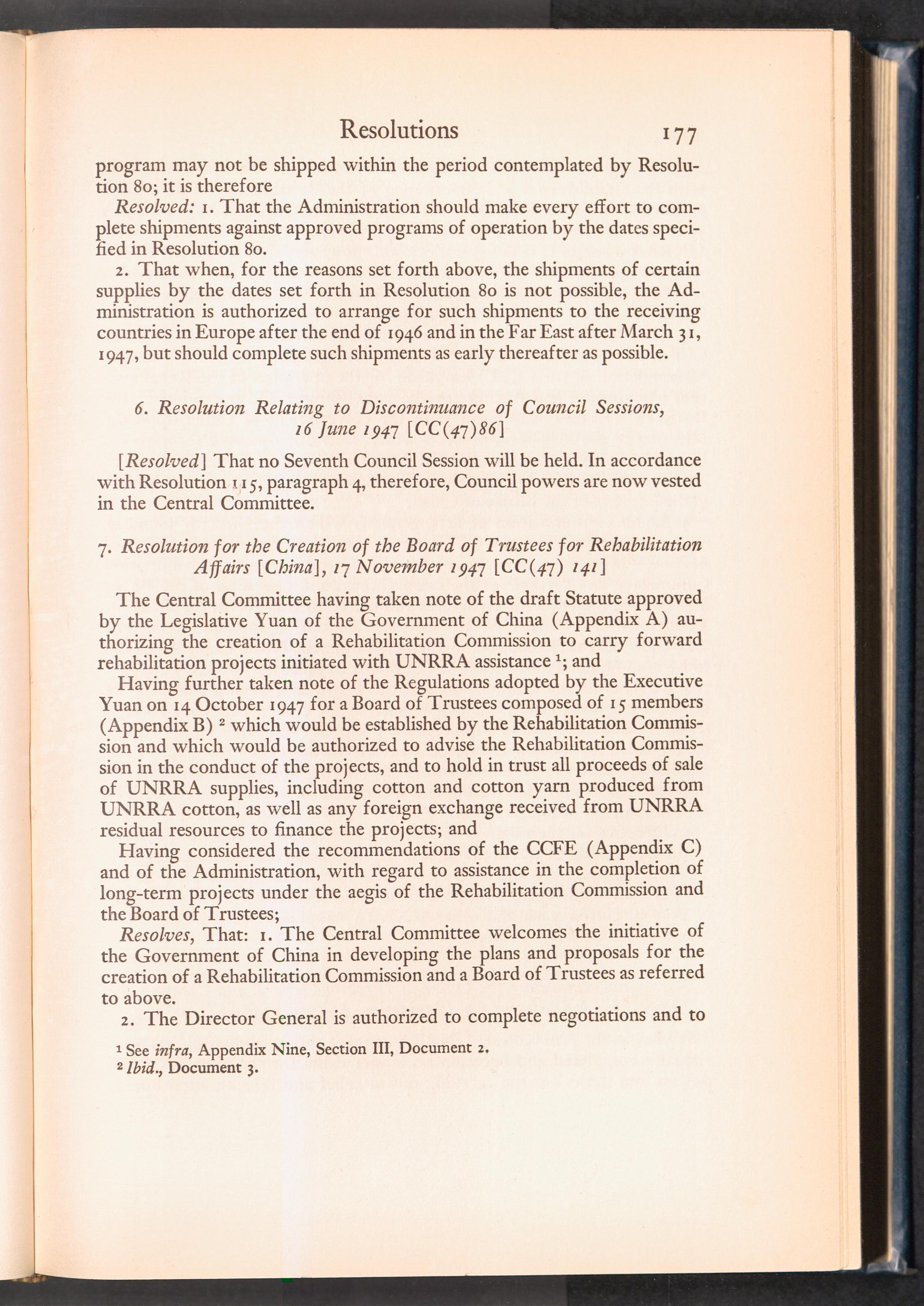 UNRRA Vol. III. UNRRA Appendices Appendix Four: Resolutions