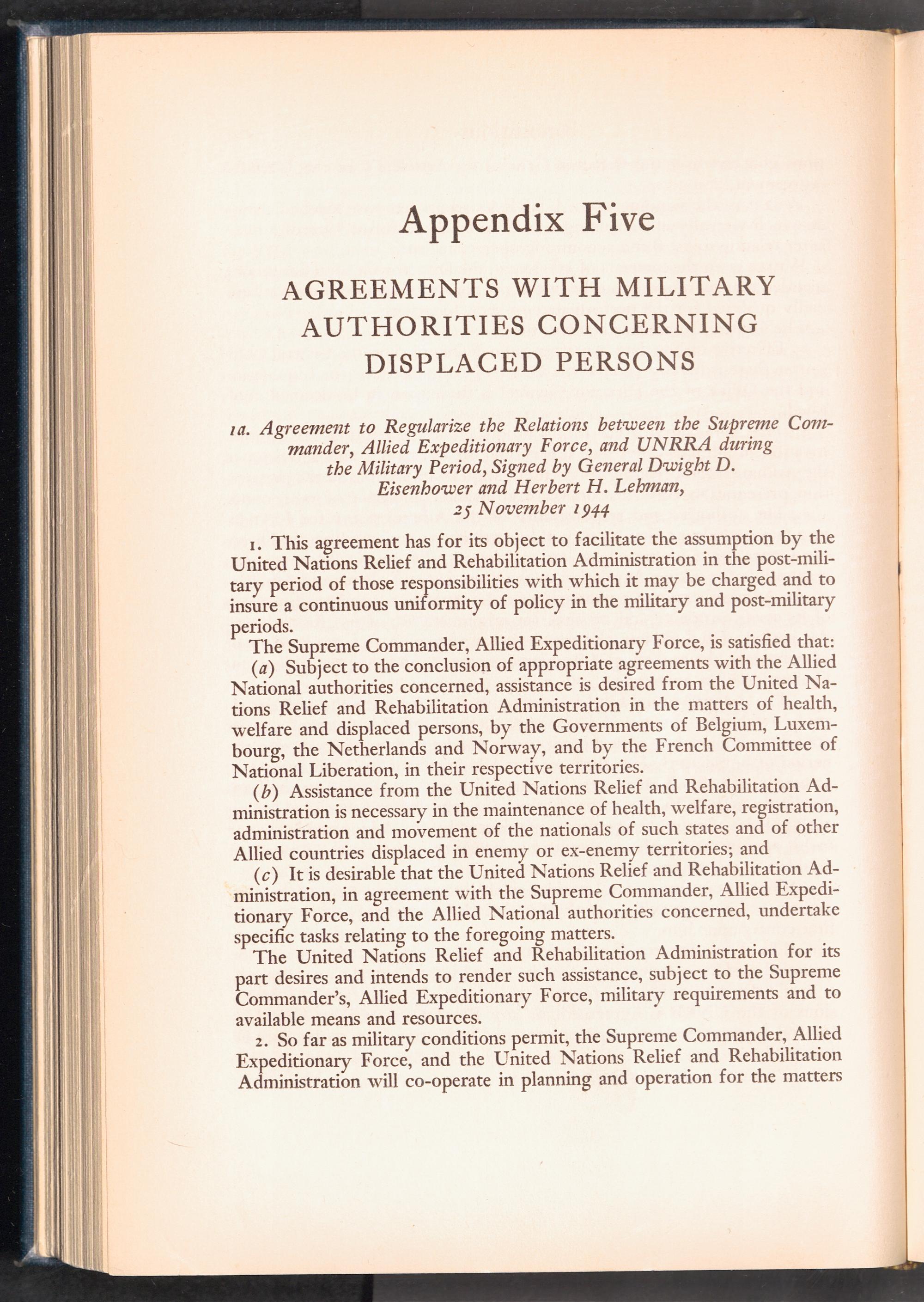 UNRRA Vol. III. UNRRA Appendices Appendix Five: Agreements with Military Authorities Concerning Displaced Persons