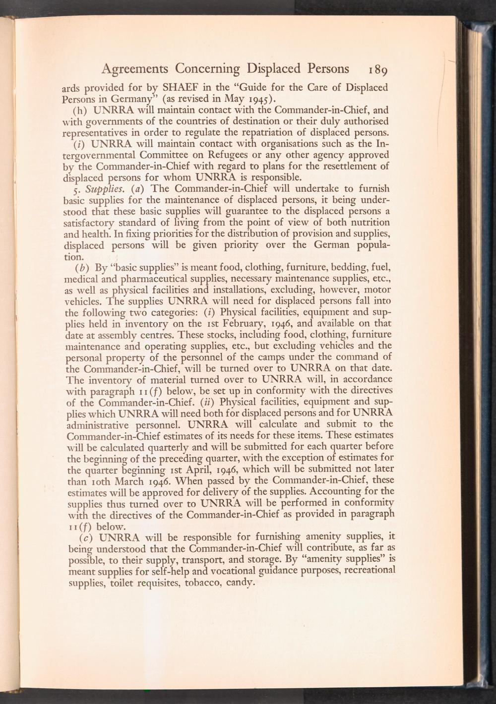 UNRRA Vol. III. UNRRA Appendices Appendix Five: Agreements with Military Authorities Concerning Displaced Persons
