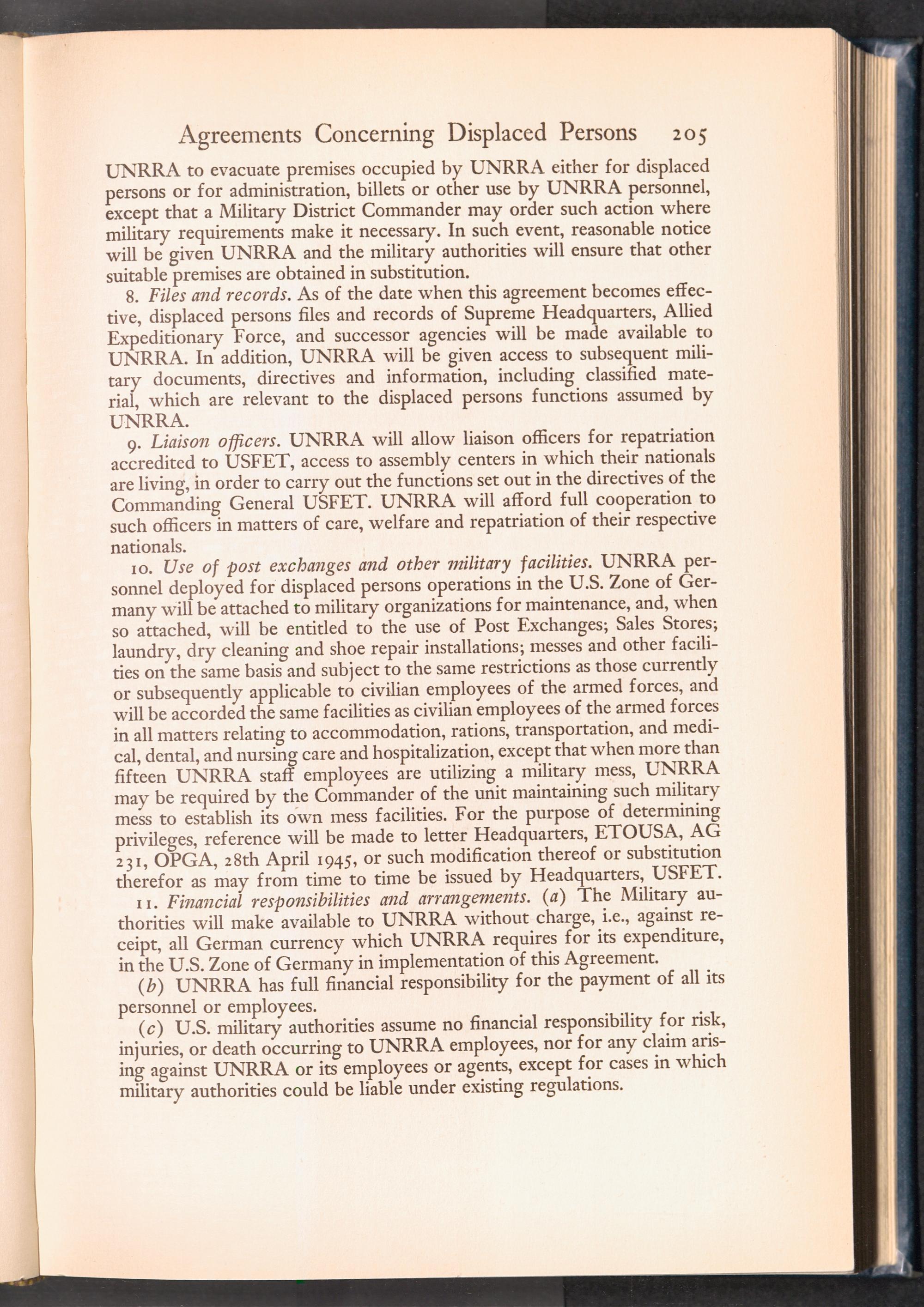 UNRRA Vol. III. UNRRA Appendices Appendix Five: Agreements with Military Authorities Concerning Displaced Persons
