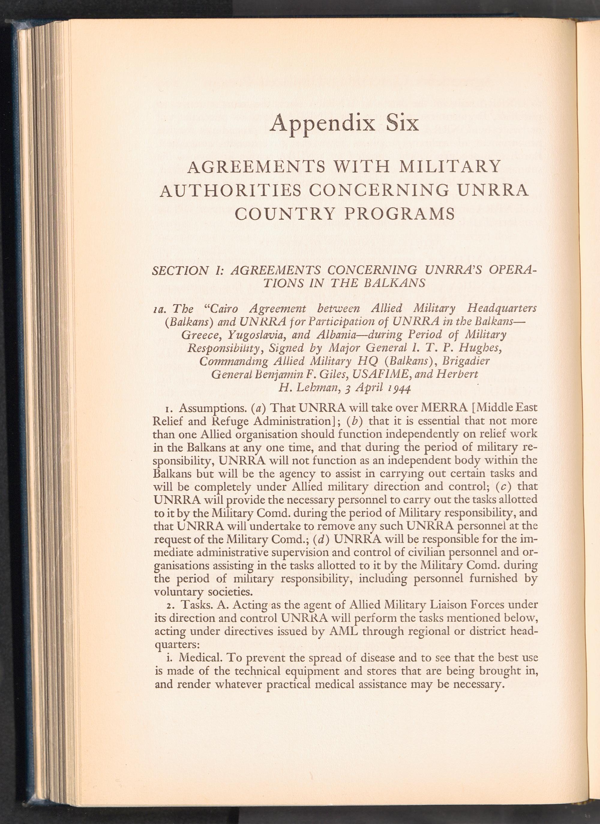 UNRRA Vol. III. UNRRA Appendices Appendix Six: Agreements with Military Authorities Concerning UNRRA Country Prog...