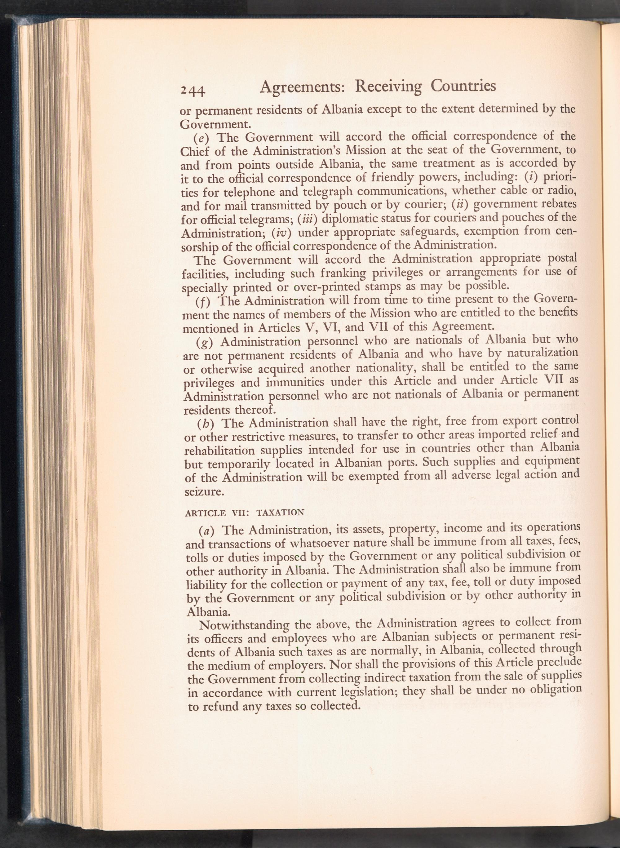 UNRRA Vol. III. UNRRA Appendices Appendix Seven: UNRRA Agreements with Governments of Receiving Countries