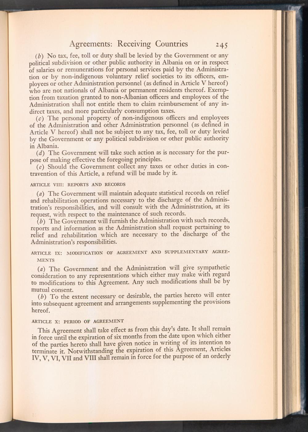 UNRRA Vol. III. UNRRA Appendices Appendix Seven: UNRRA Agreements with Governments of Receiving Countries