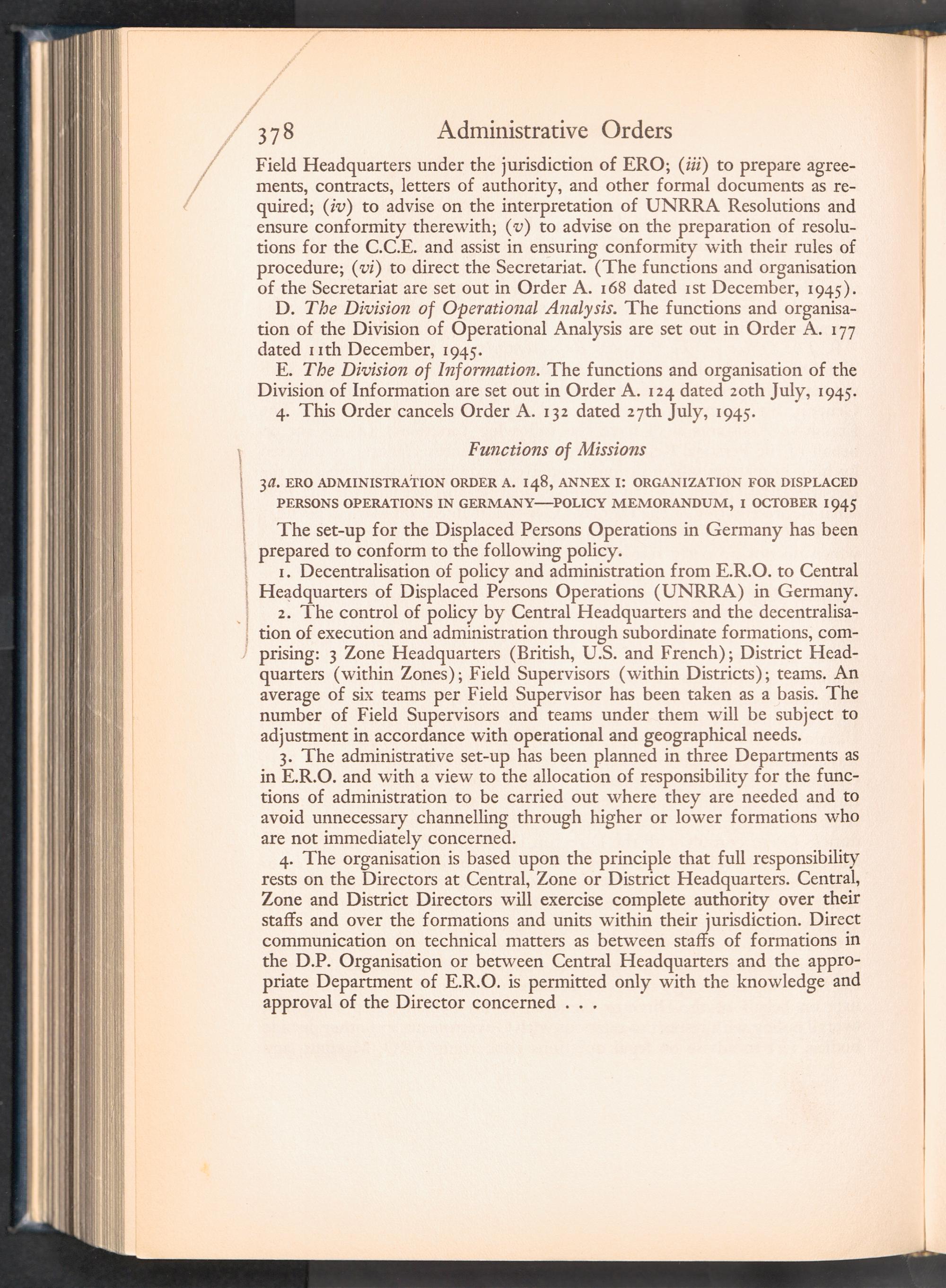 UNRRA Vol. III. UNRRA Appendices Appendix Nine: Administrative Orders, etc.