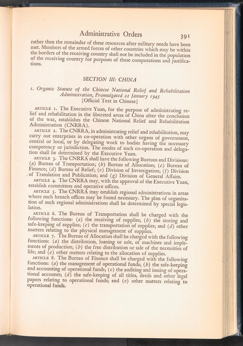 UNRRA Vol. III. UNRRA Appendices Appendix Nine: Administrative Orders, etc.
