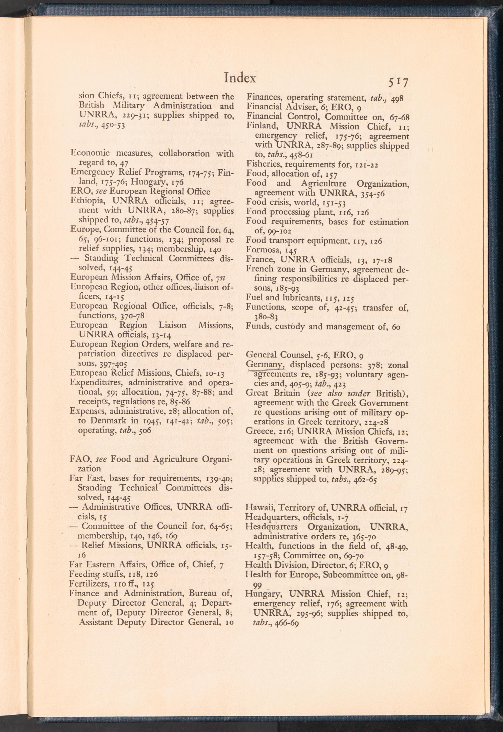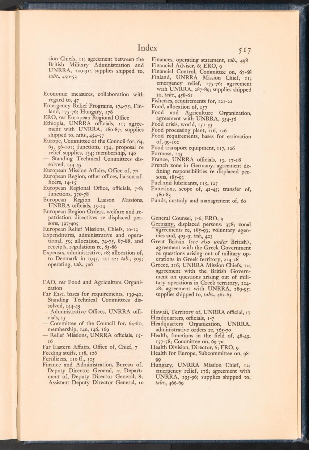 UNRRA Vol. III. UNRRA Index