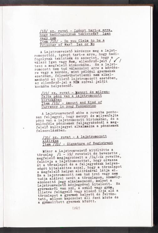 Displaced Persons - Registration Instructions Chapter XI (Hungarian)