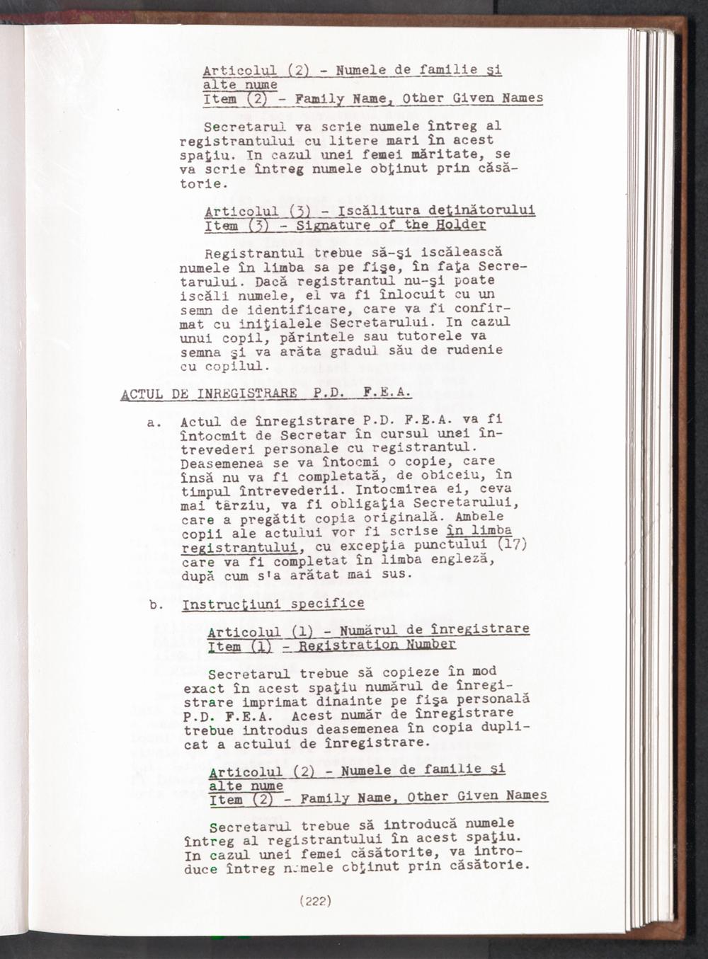Displaced Persons - Registration Instructions Chapter XV (Rumanian)