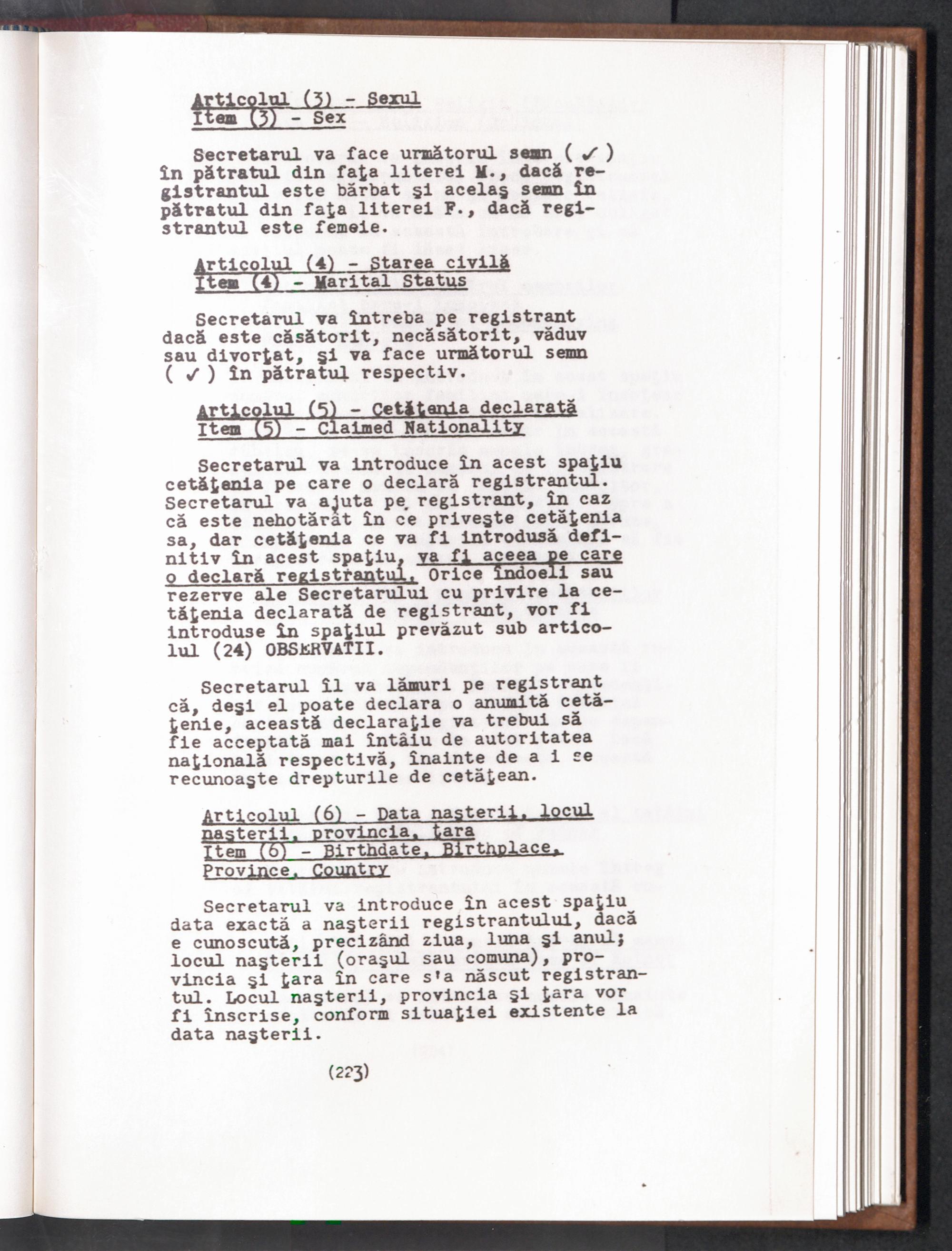 Displaced Persons - Registration Instructions Chapter XV (Rumanian)