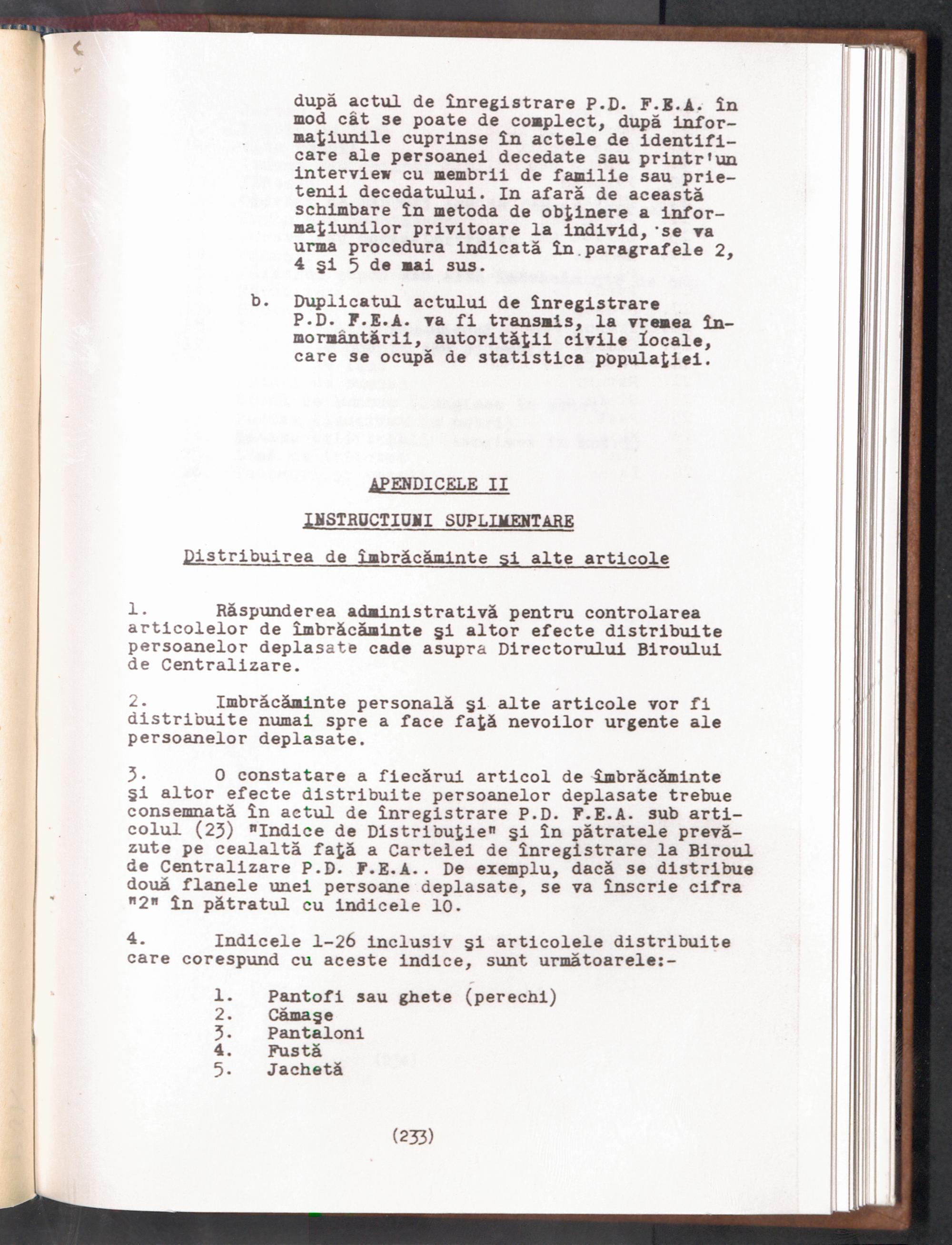 Displaced Persons - Registration Instructions Chapter XV (Rumanian)