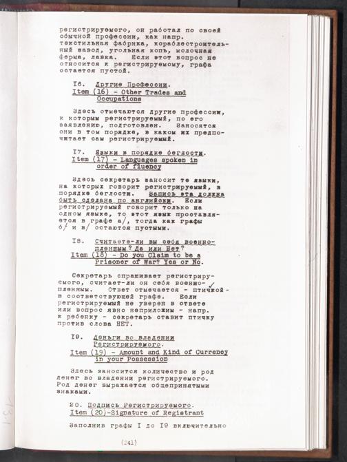 Displaced Persons - Registration Instructions Chapter XVI (Russian)