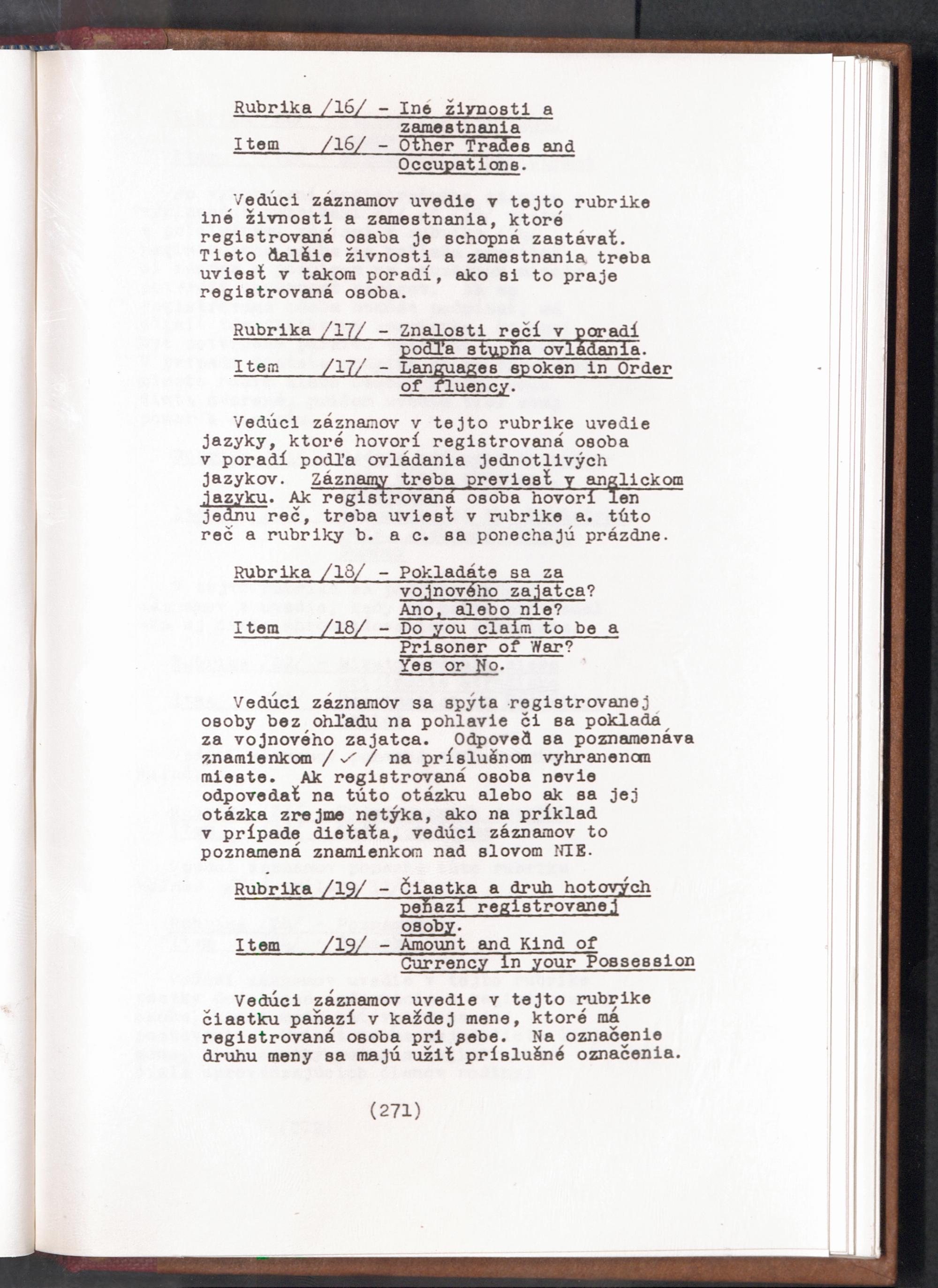 Displaced Persons - Registration Instructions Chapter XVIII (Slovak)
