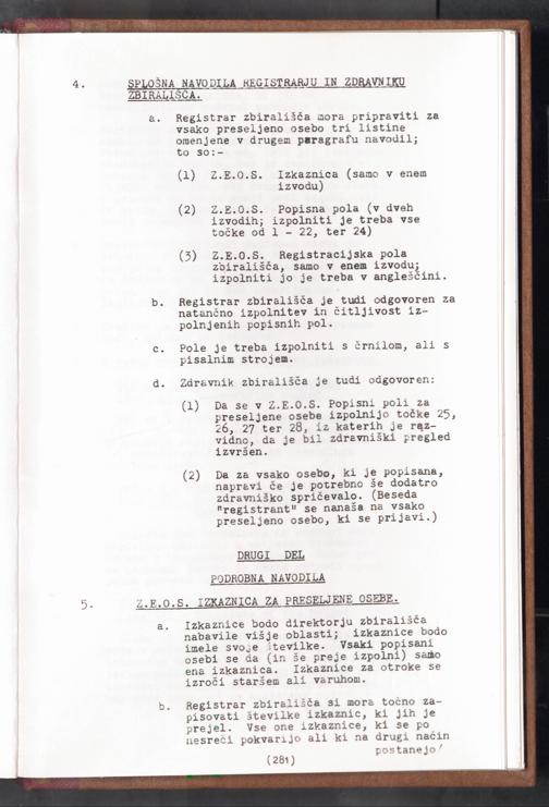 Displaced Persons - Registration Instructions Chapter XIX (Slovene)