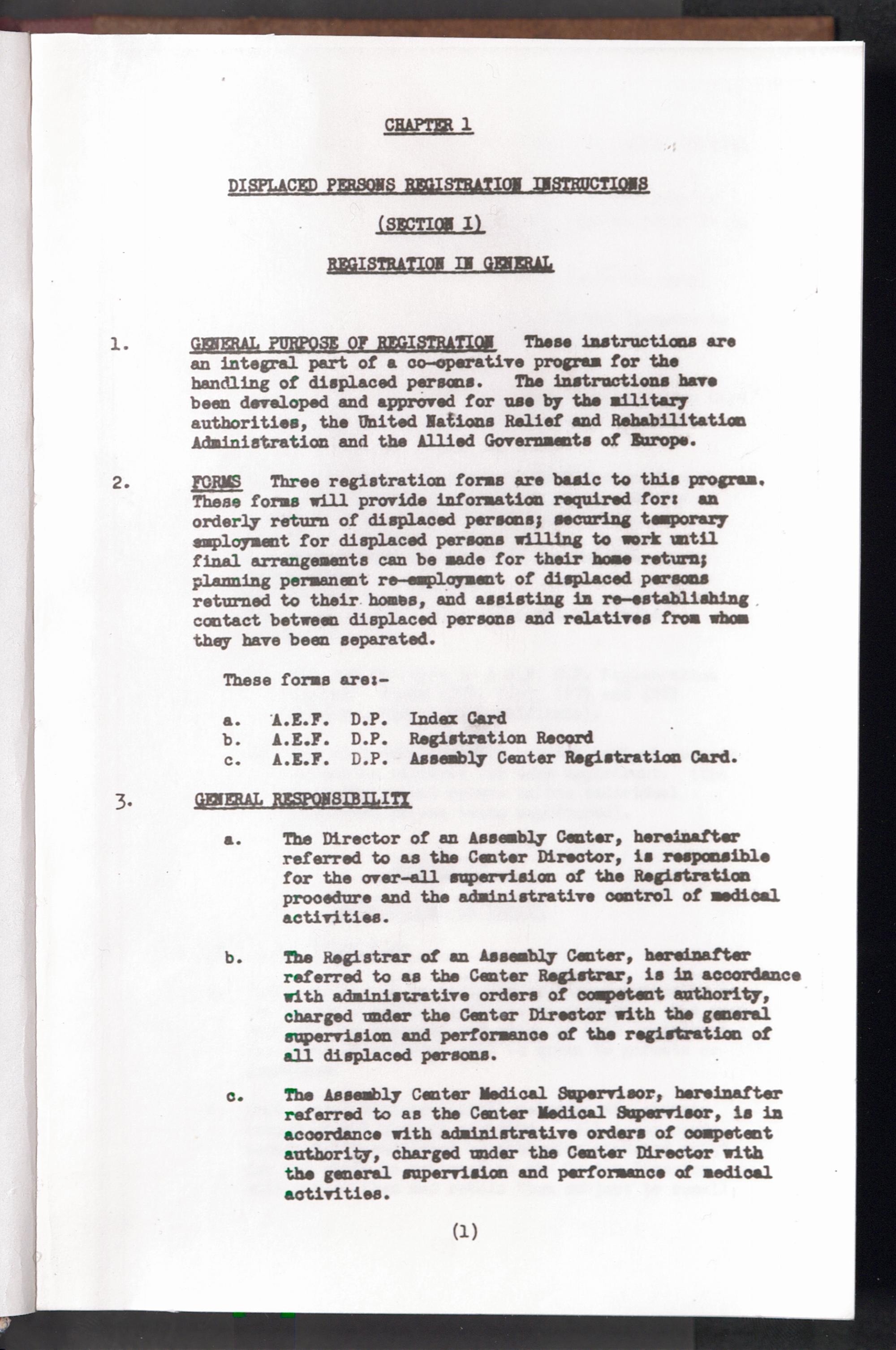 Displaced Persons - Registration Instructions - Teil 1 Chapter I (Englisch)
