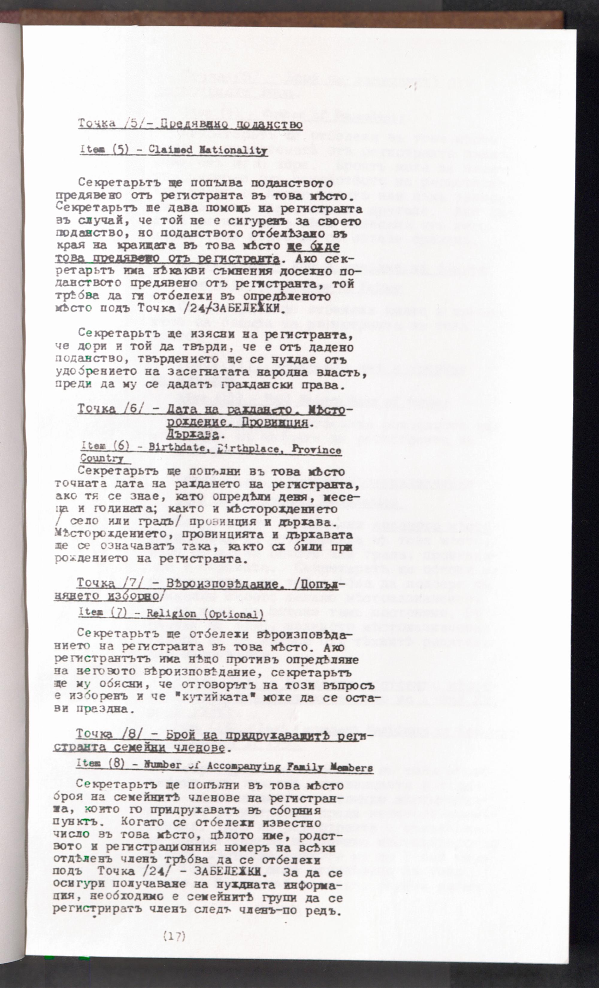 Displaced Persons - Registration Instructions - Teil 1 Chapter II (Bulgarian)