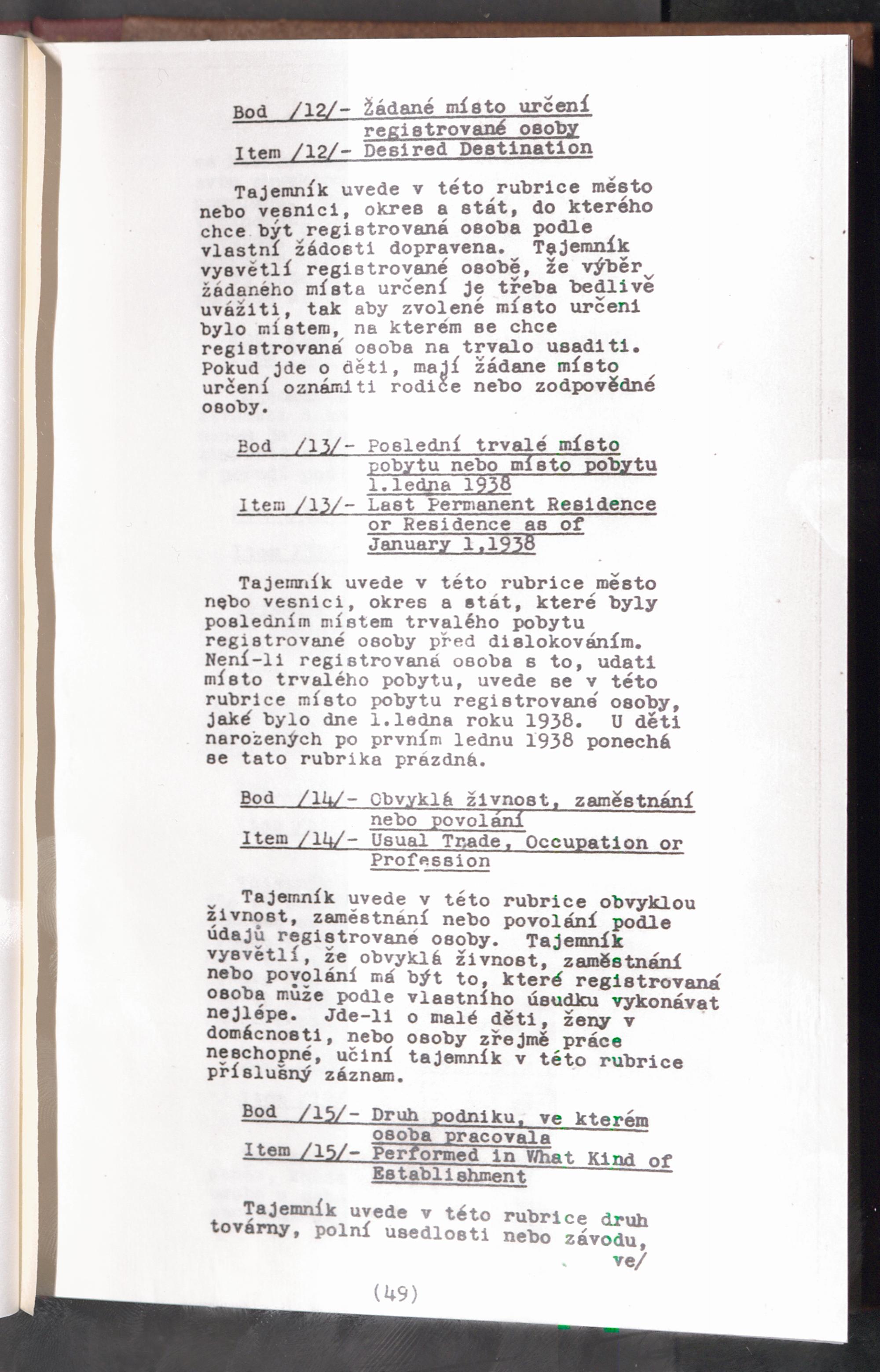 Displaced Persons - Registration Instructions - Teil 1 Chapter IV (Czech)