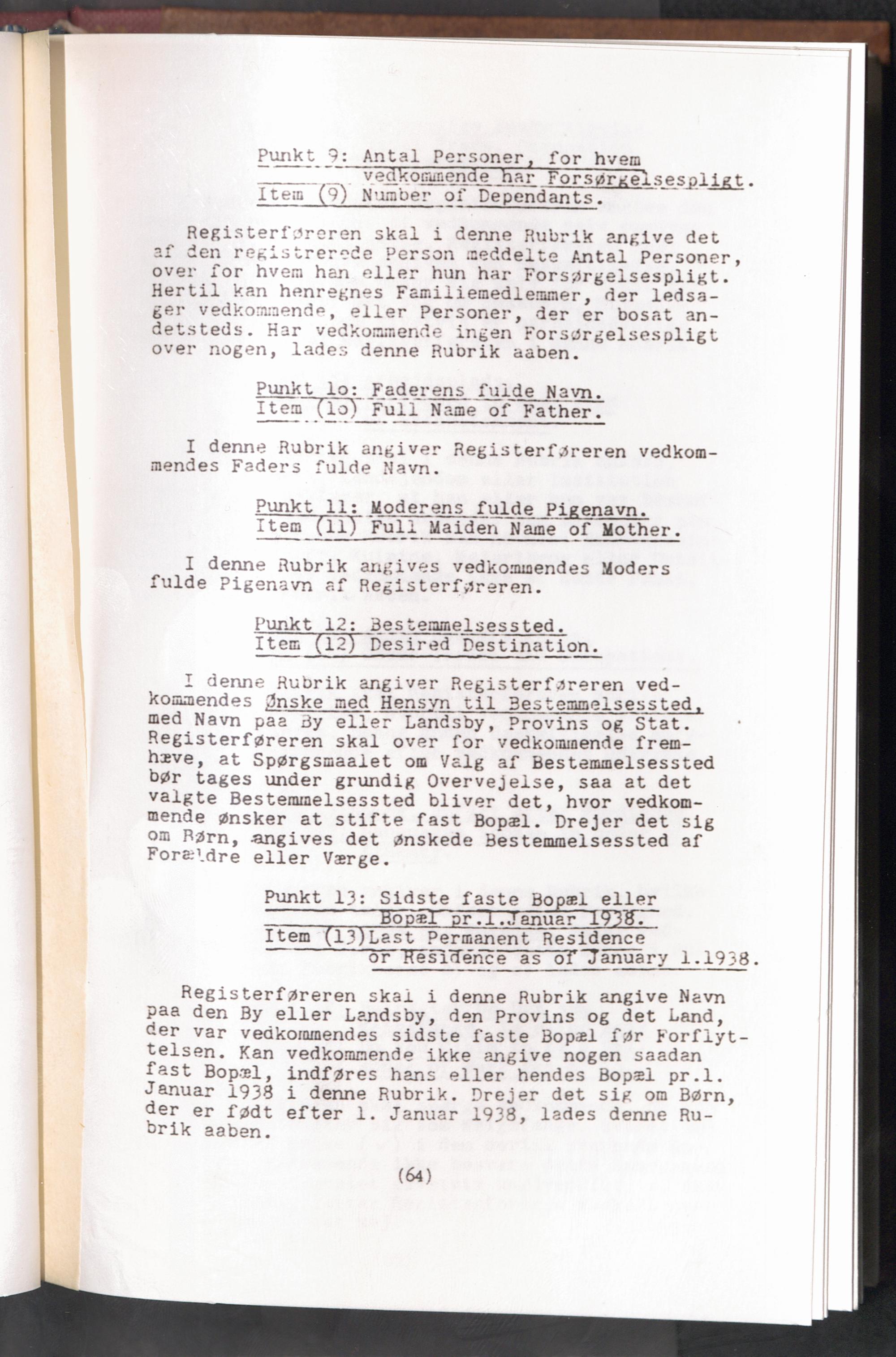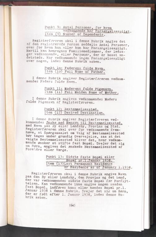 Displaced Persons - Registration Instructions - Teil 1 Chapter V (Danish)