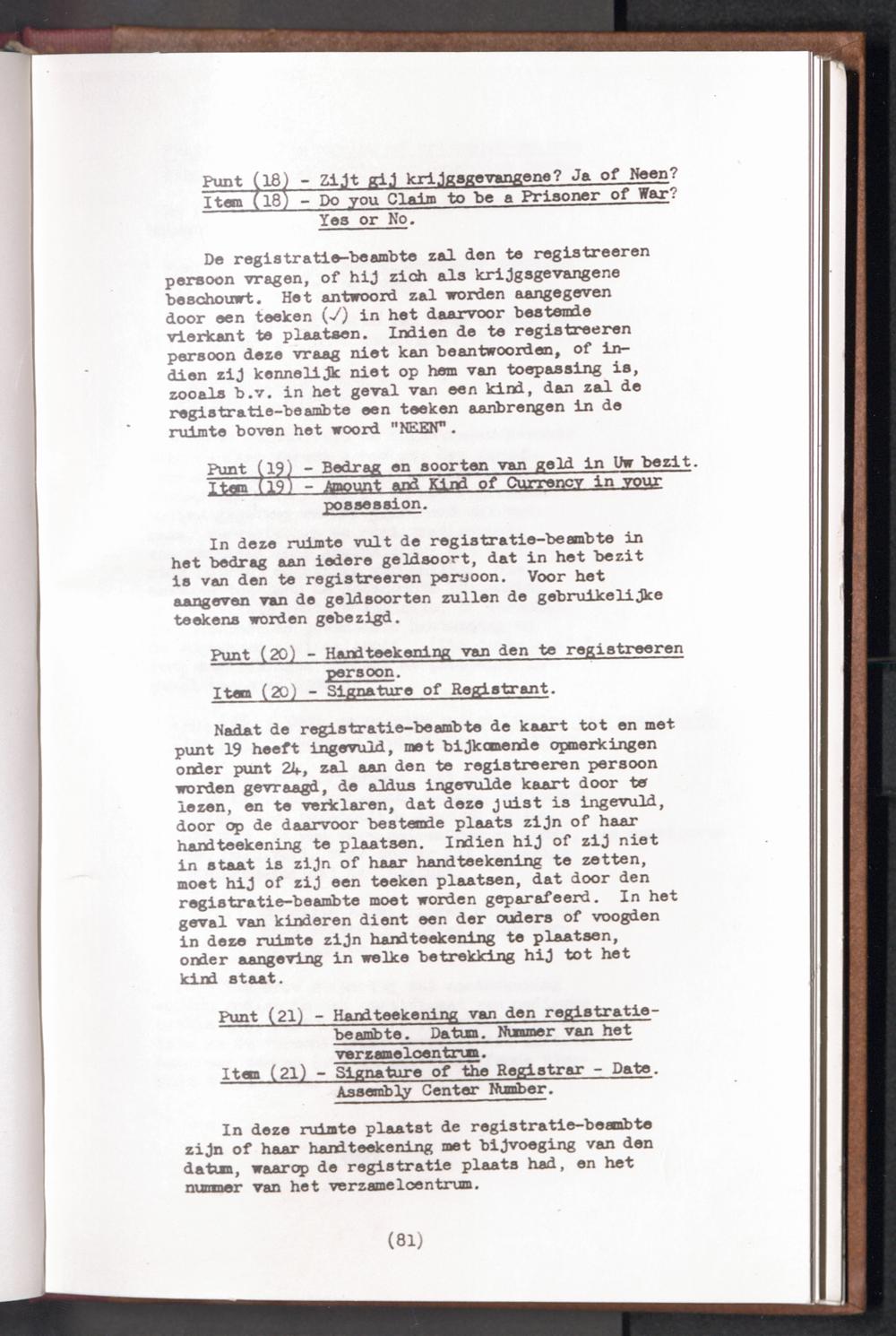 Displaced Persons - Registration Instructions - Teil 1 Chapter VI (Dutch)