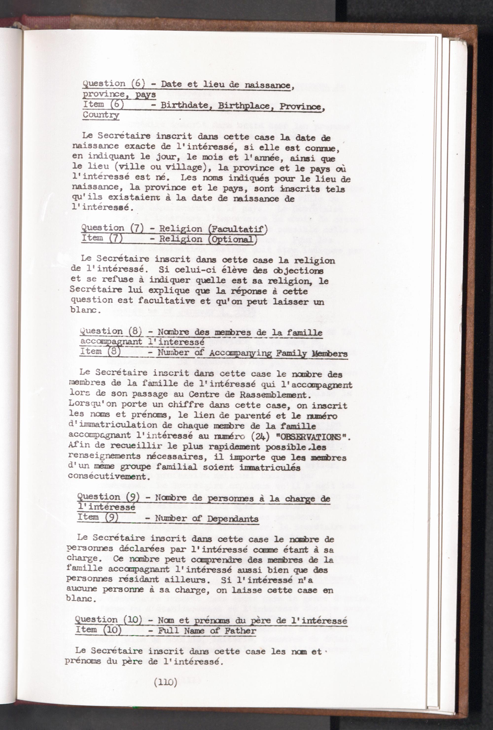 Displaced Persons - Registration Instructions - Teil 1 Chapter VIII (French)