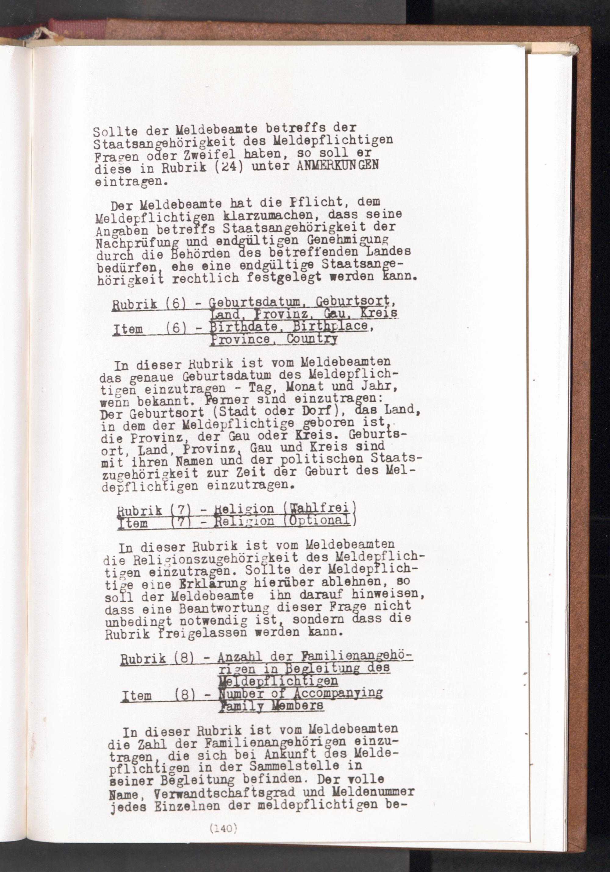 Displaced Persons - Registration Instructions - Teil 1 Chapter X (German)