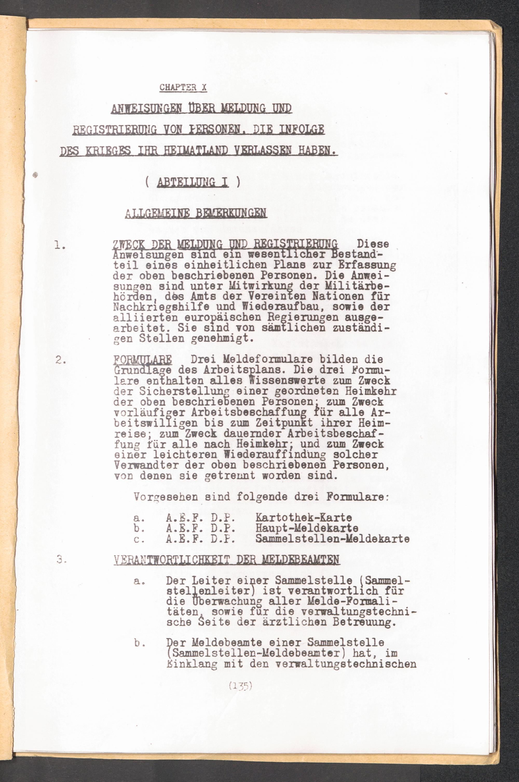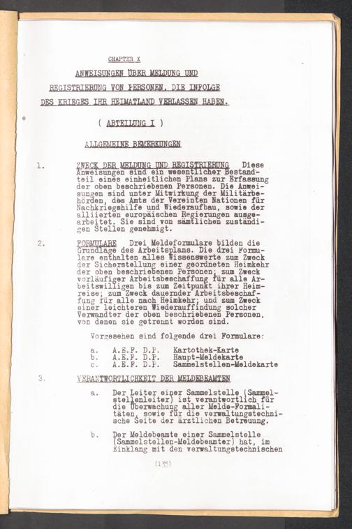 Registrierung von DP's : Anweisungen über Meldung und Registrierung von Personen, die infolge des Krieges ihr Heimatland verlassen haben / SHAEF