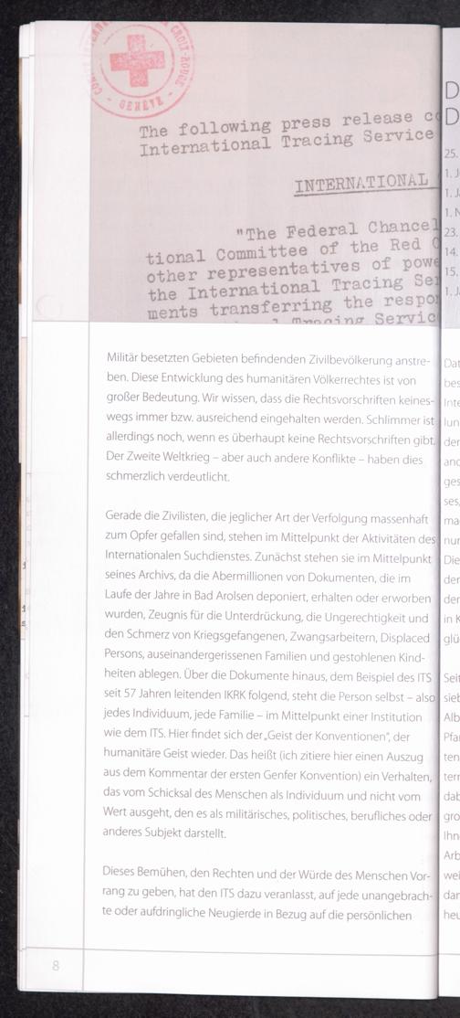 Empfang zum Abschied des IKRK 29. November 2012 / International Tracing Service