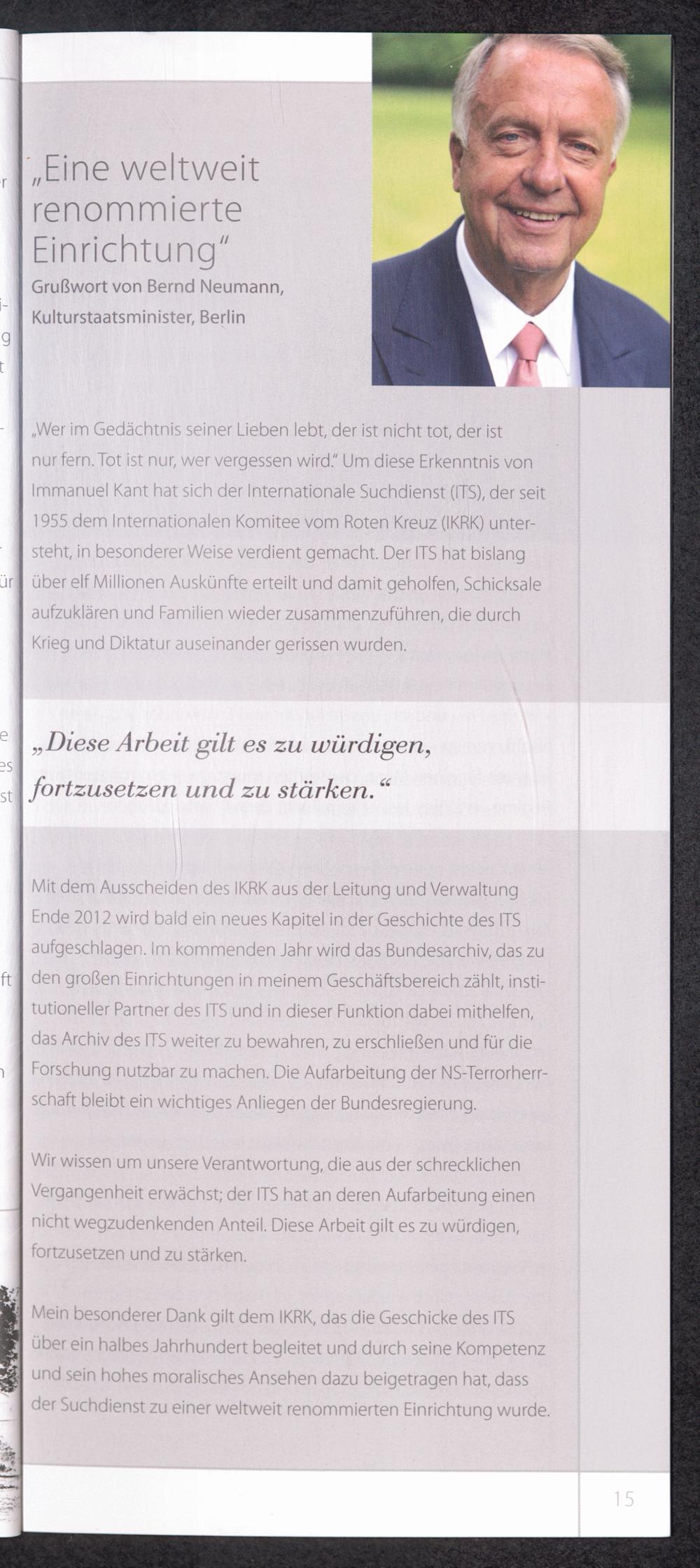 Empfang zum Abschied des IKRK 29. November 2012 / International Tracing Service