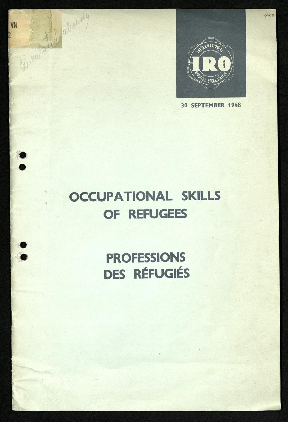 Occupational skills of refugees / Profession des réfugiés / International Refugee Organization