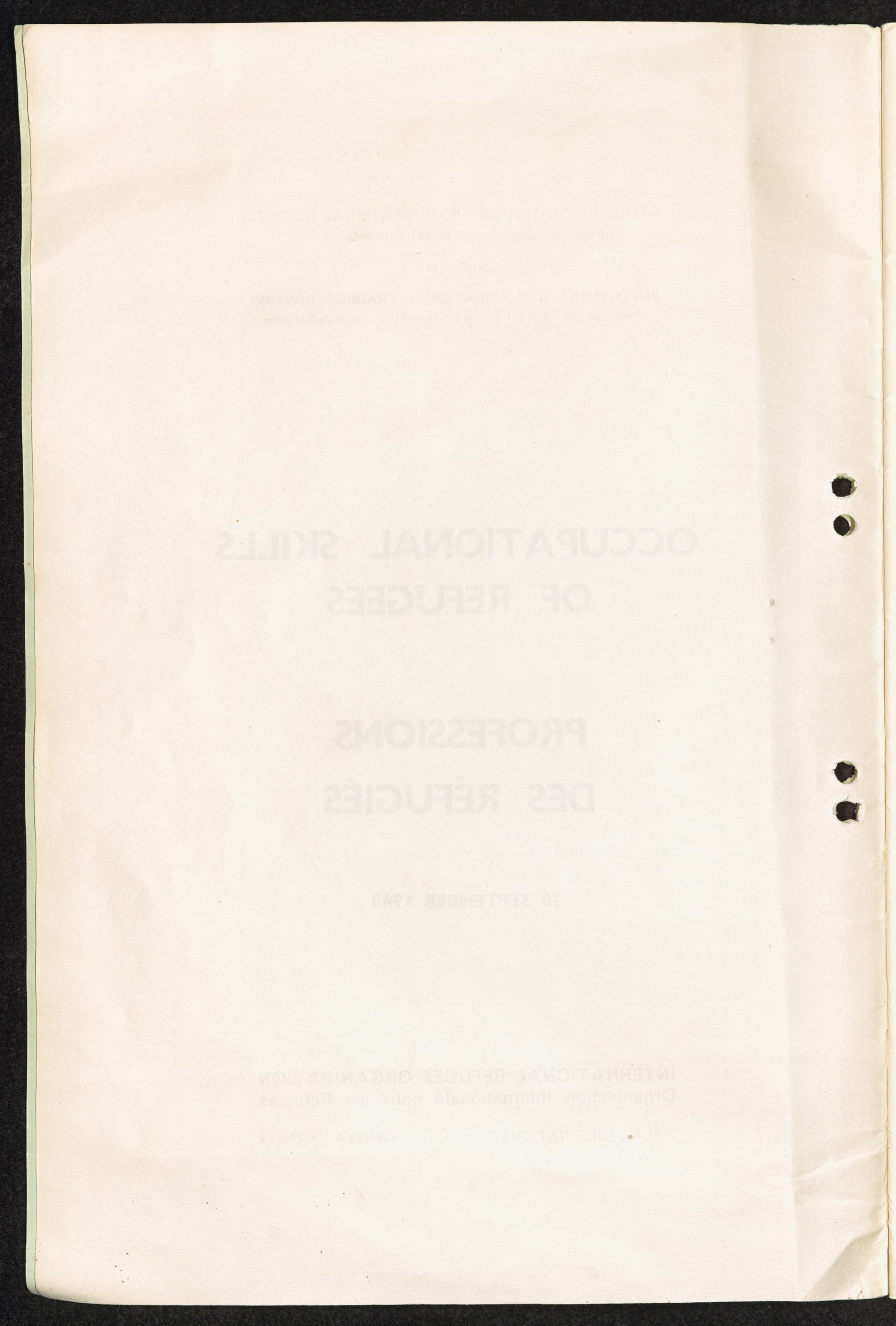 Occupational skills of refugees / Profession des réfugiés / International Refugee Organization