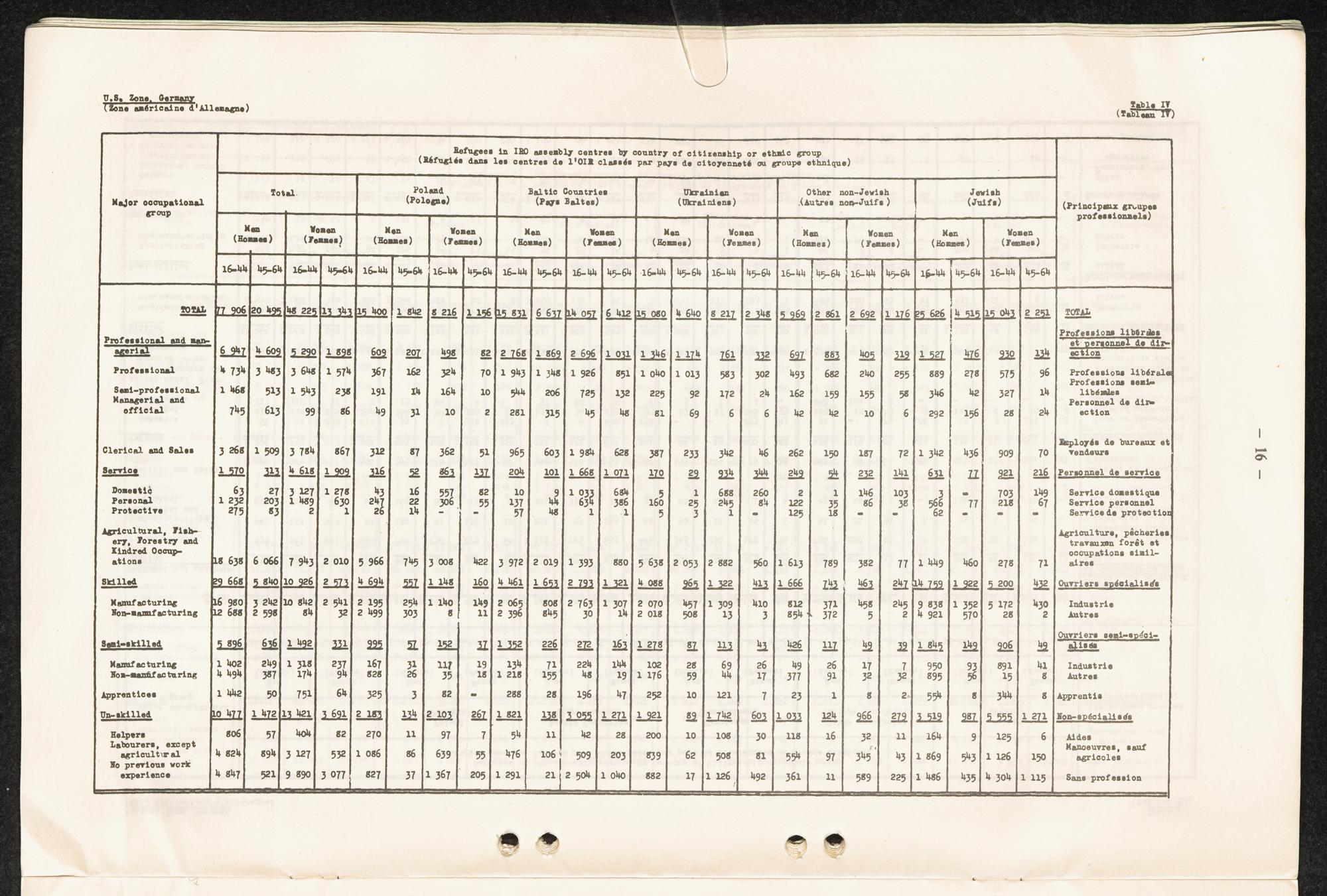 Occupational skills of refugees / Profession des réfugiés / International Refugee Organization
