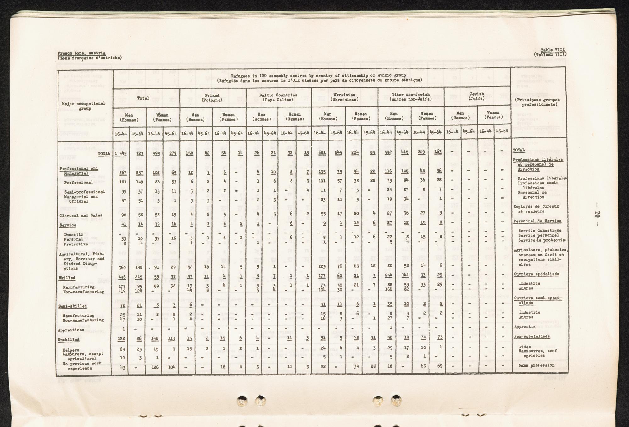 Occupational skills of refugees / Profession des réfugiés / International Refugee Organization