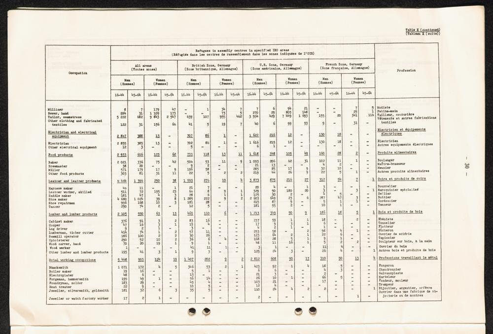 Occupational skills of refugees / Profession des réfugiés / International Refugee Organization