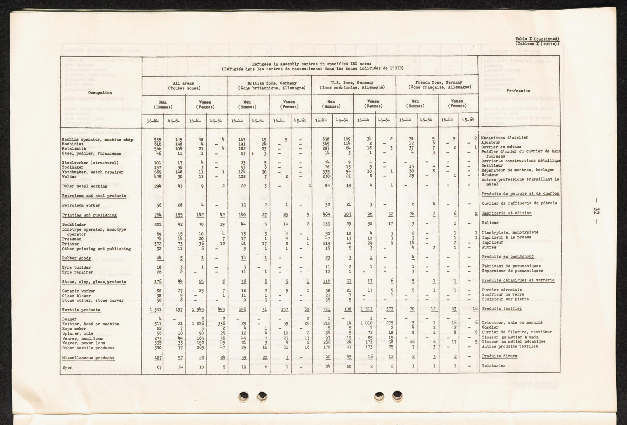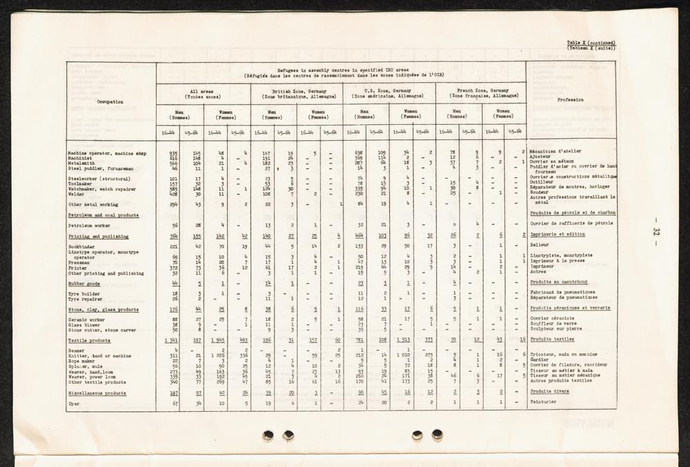 Occupational skills of refugees / Profession des réfugiés / International Refugee Organization