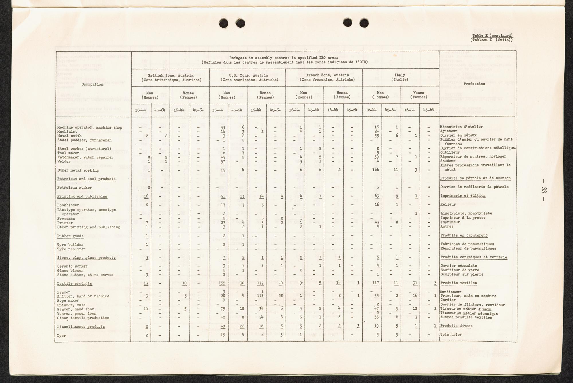 Occupational skills of refugees / Profession des réfugiés / International Refugee Organization