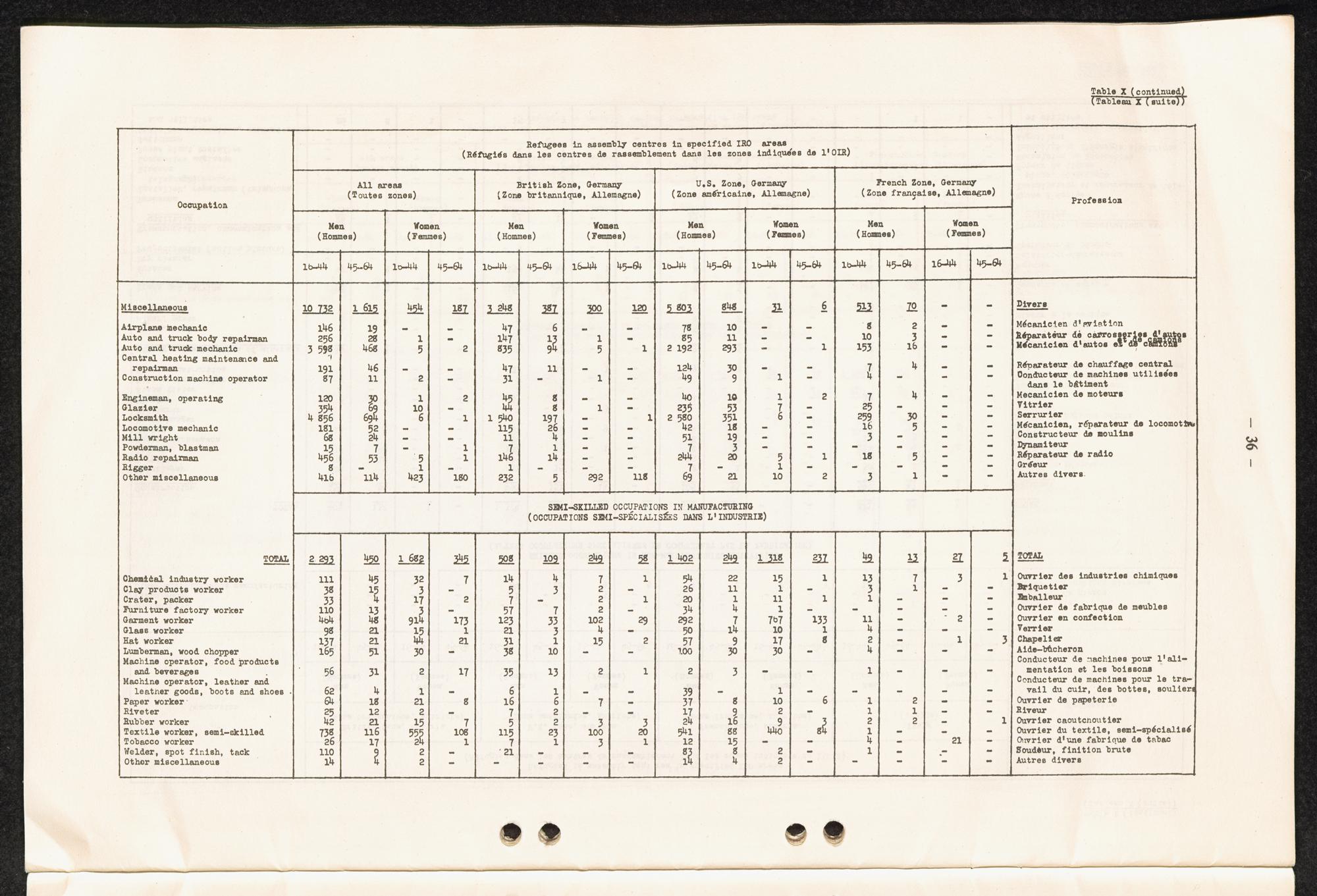 Occupational skills of refugees / Profession des réfugiés / International Refugee Organization