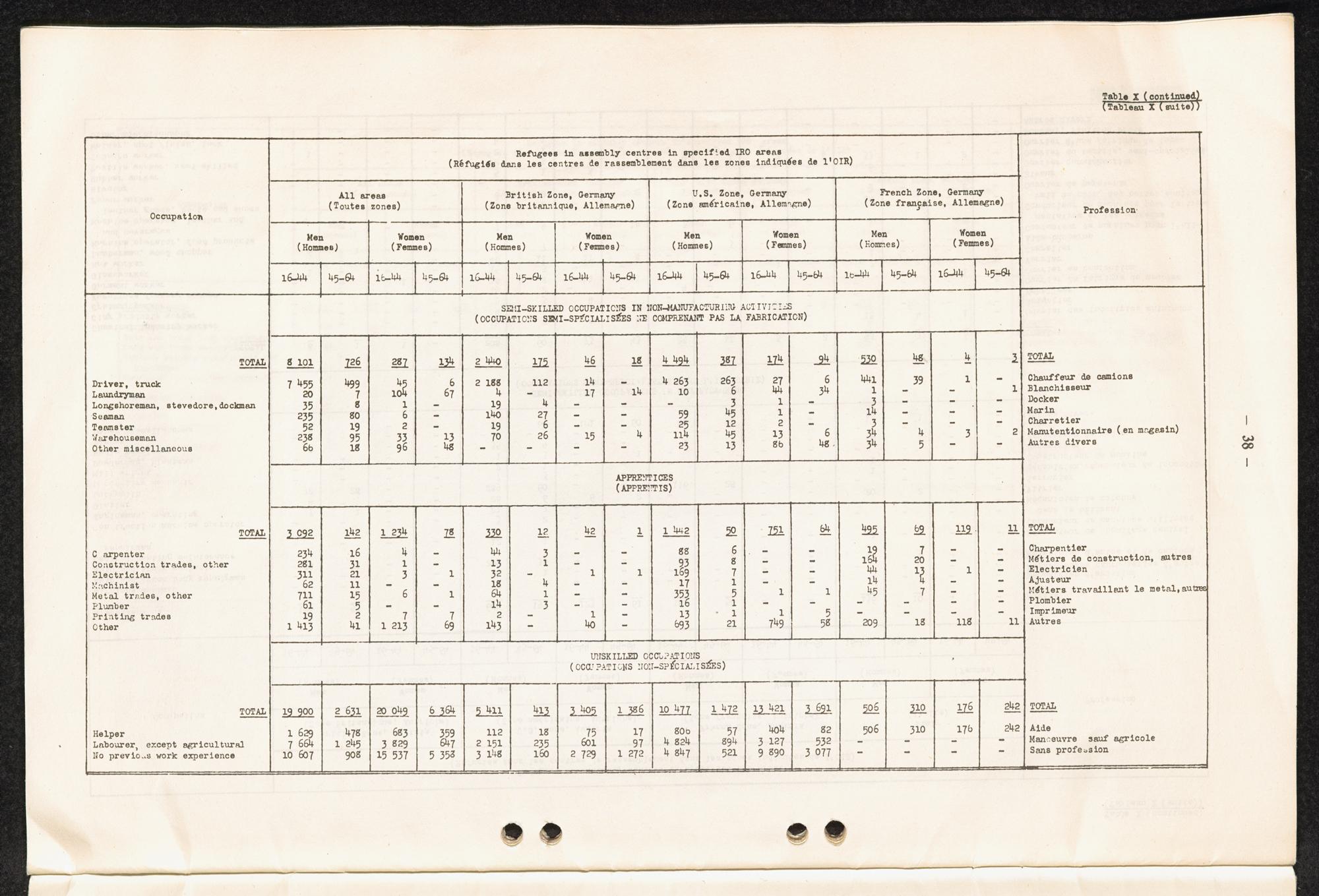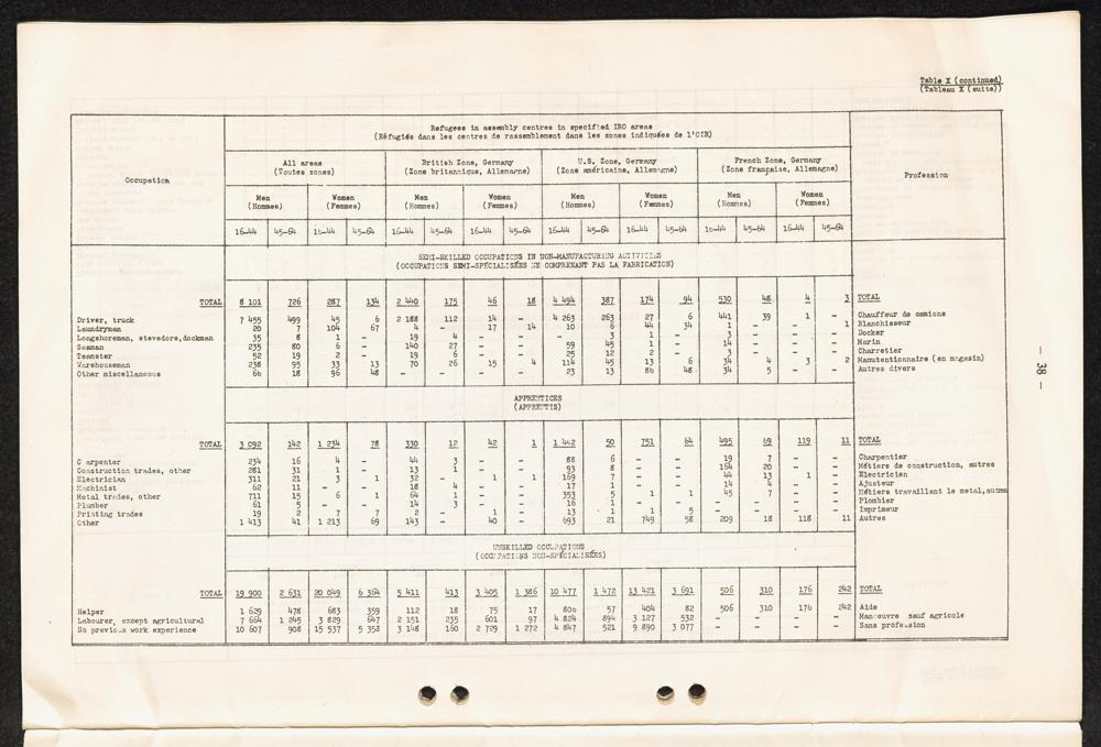 Occupational skills of refugees / Profession des réfugiés / International Refugee Organization
