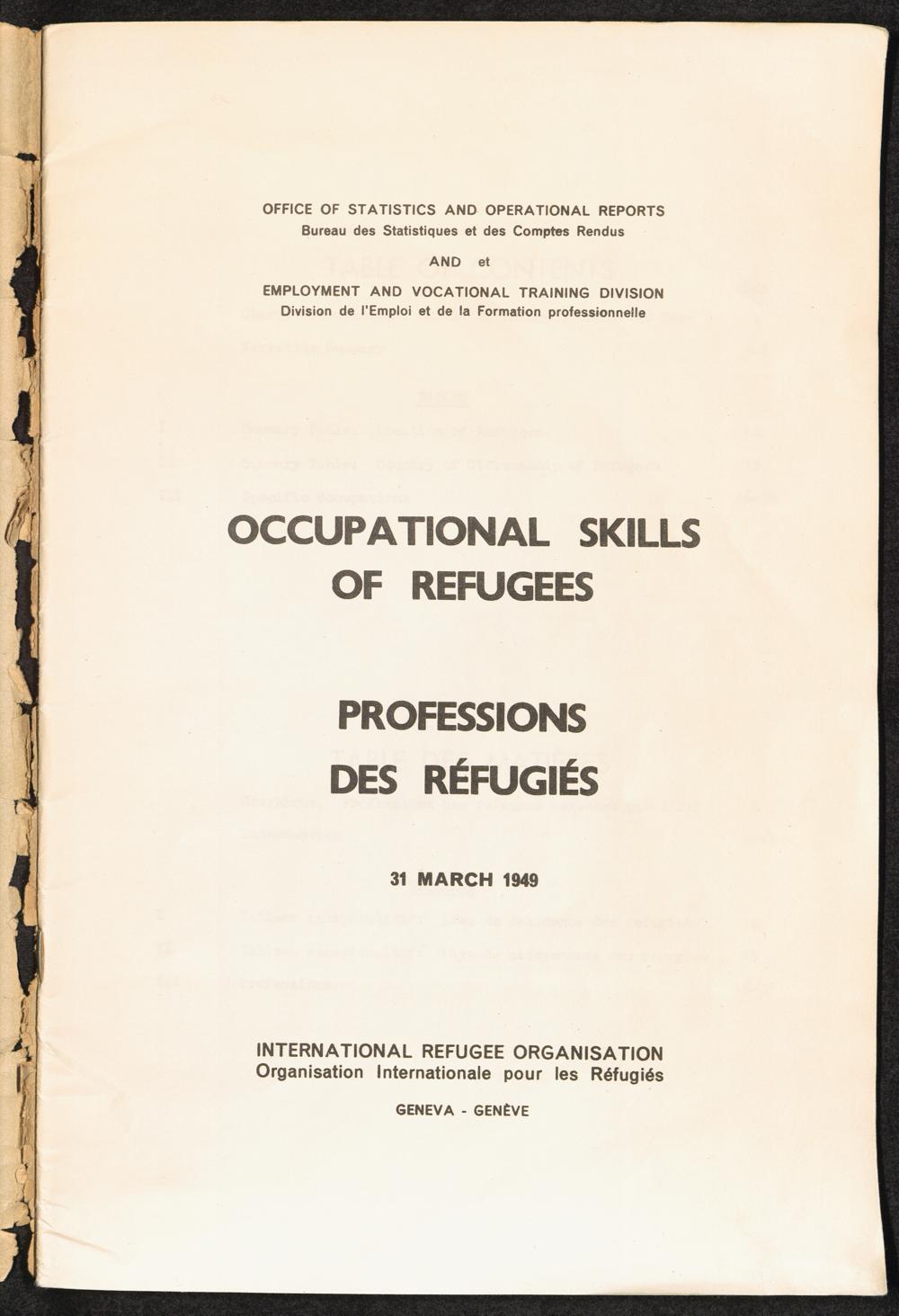 Occupational skills of refugees / Profession des réfugiés / International Refugee Organization