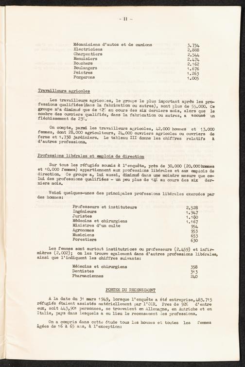 Occupational skills of refugees / Profession des réfugiés / International Refugee Organization