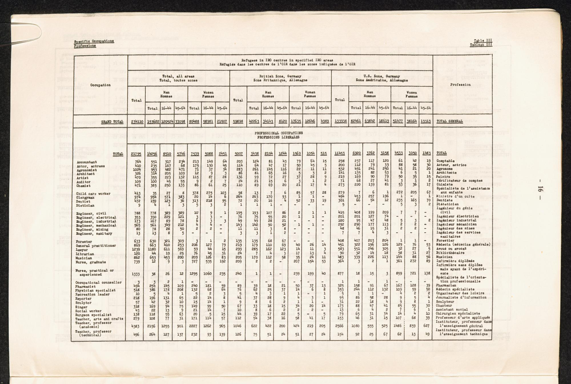 Occupational skills of refugees / Profession des réfugiés / International Refugee Organization