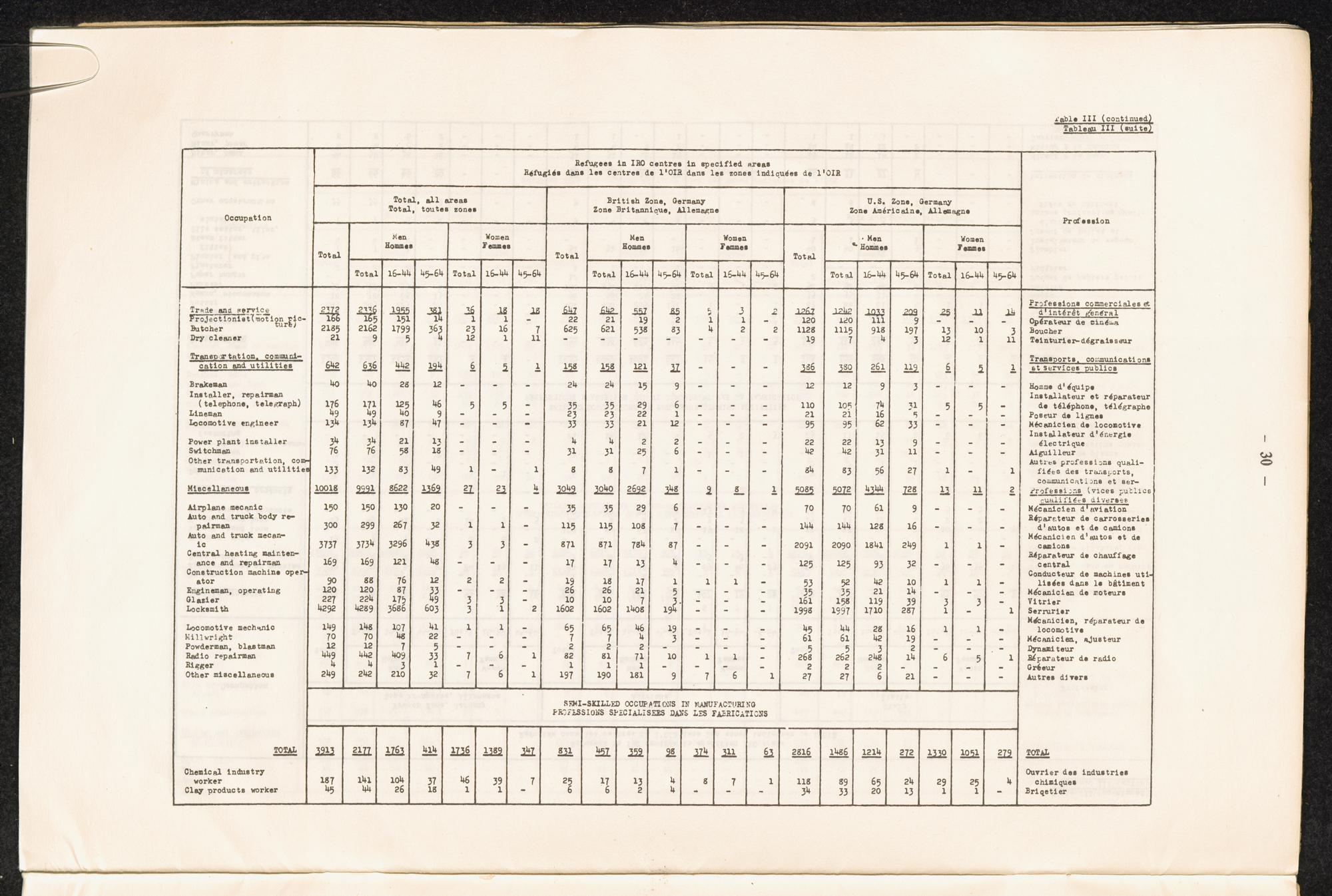 Occupational skills of refugees / Profession des réfugiés / International Refugee Organization