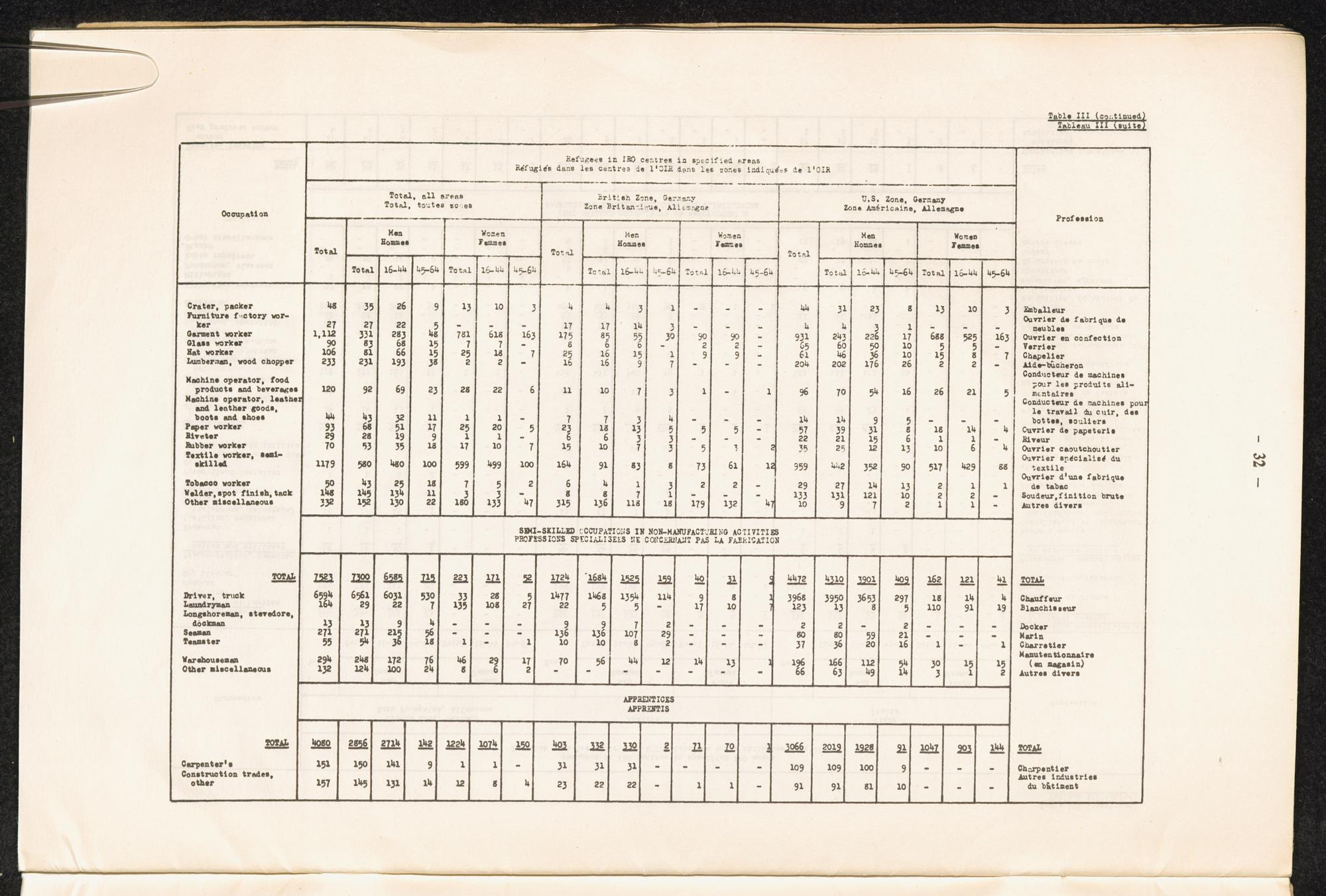 Occupational skills of refugees / Profession des réfugiés / International Refugee Organization