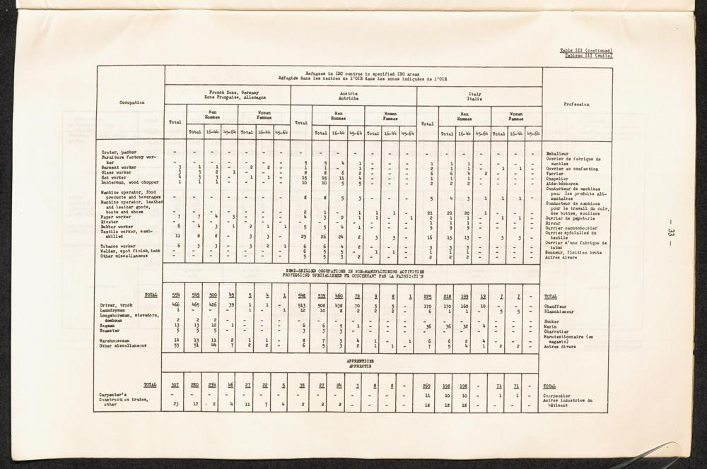 Occupational skills of refugees / Profession des réfugiés / International Refugee Organization