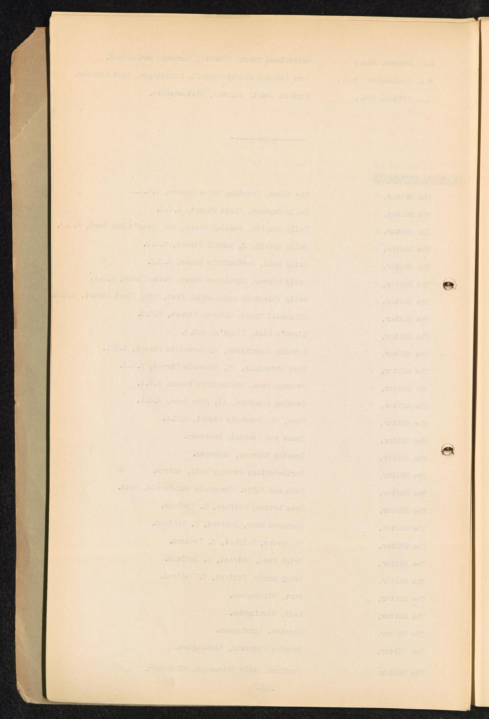 Master List giving names and addresses of persons receiving distribution of "Facts... Principal Newspapers.