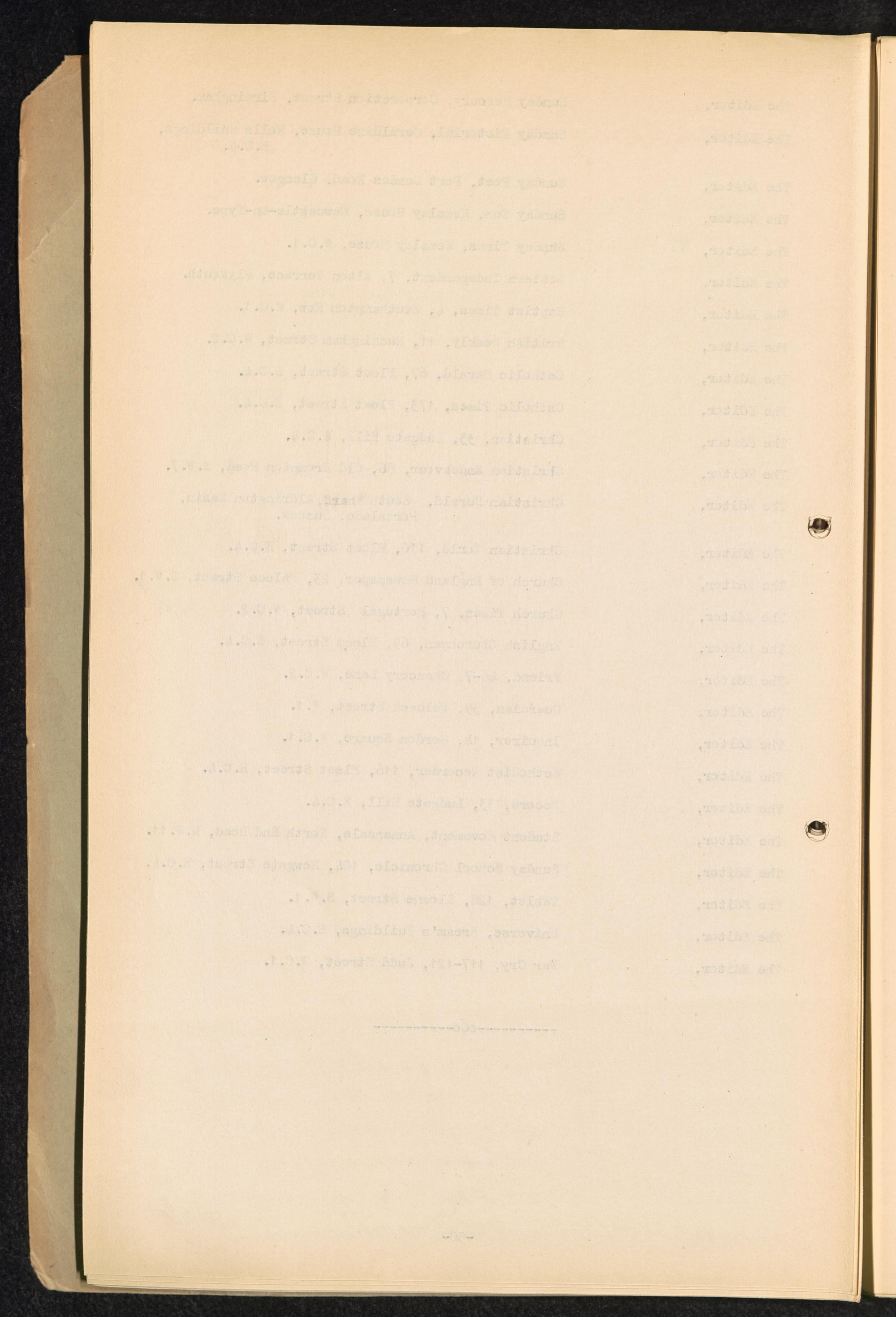 Master List giving names and addresses of persons receiving distribution of "Facts... Principal Newspapers.