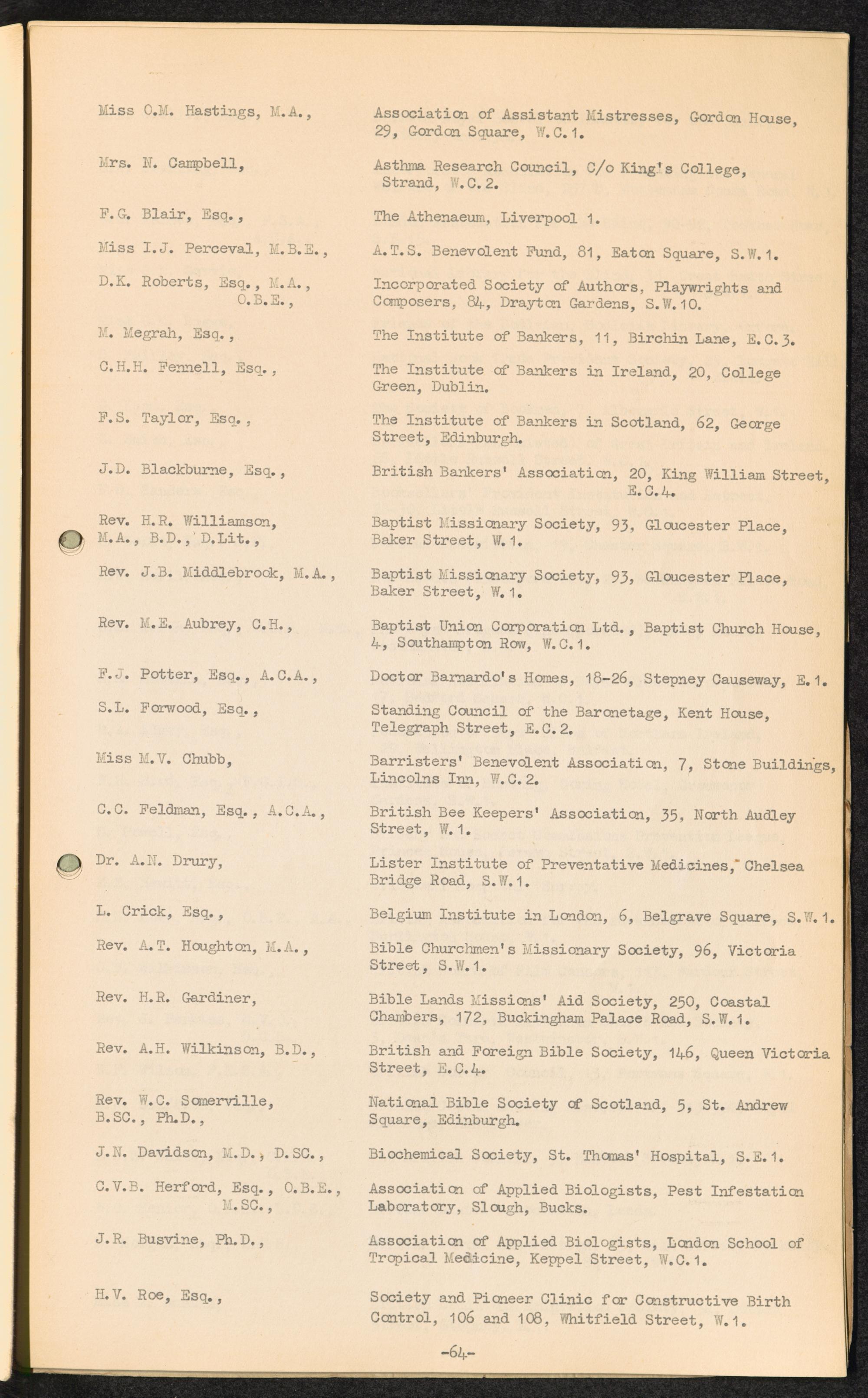 Master List giving names and addresses of persons receiving distribution of "Facts about Refugees" Leaflet / International Refugee Organization