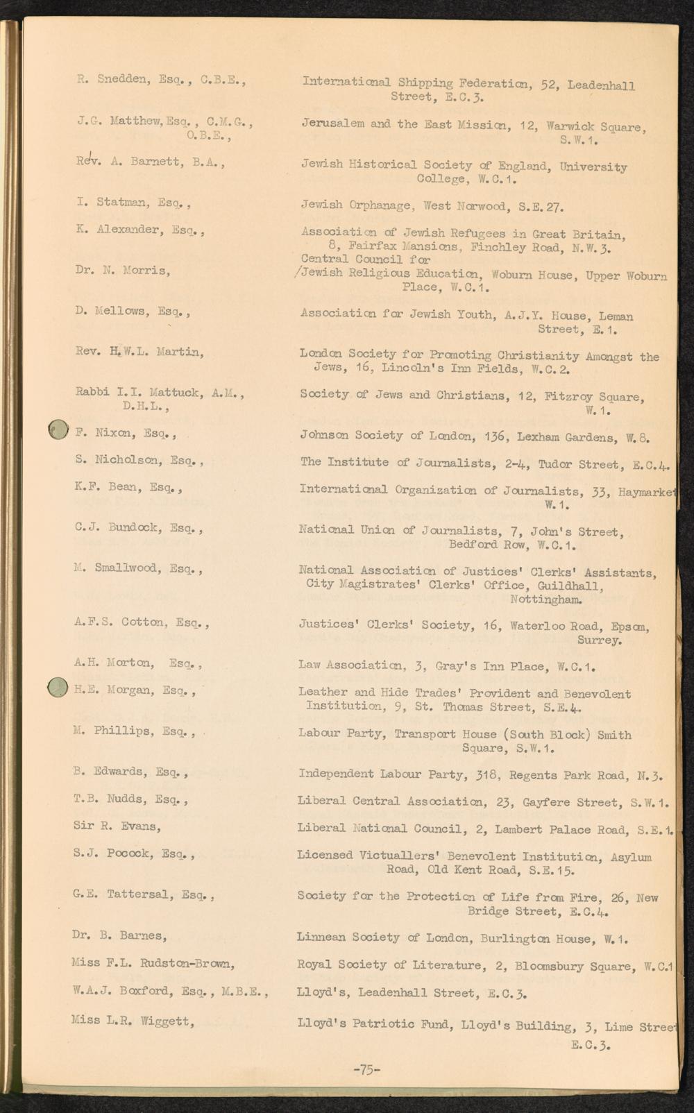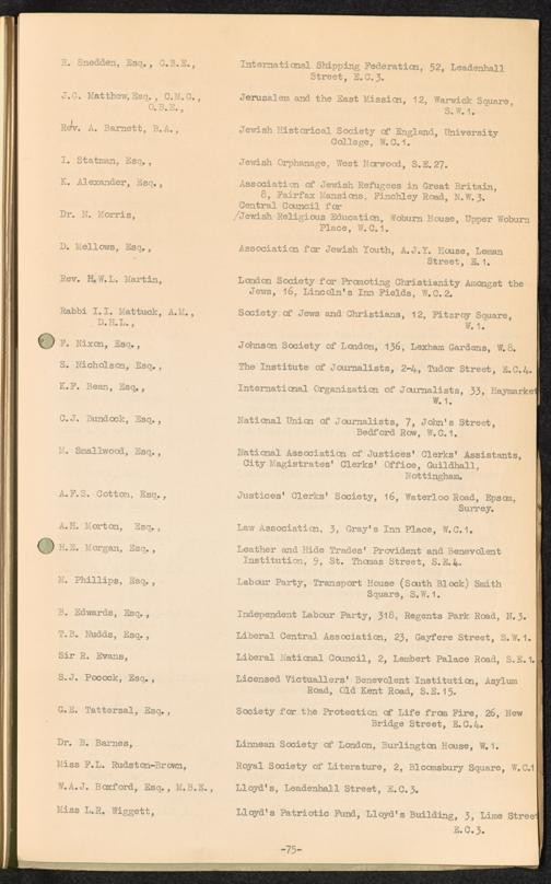 Master List giving names and addresses of persons receiving distribution of "Facts about Refugees" Leaflet / International Refugee Organization