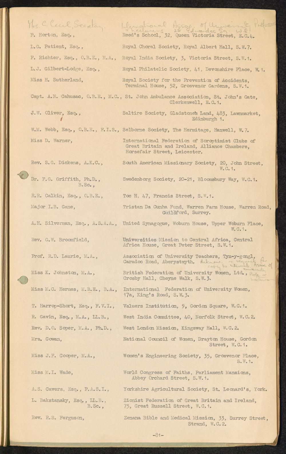 Master List giving names and addresses of persons receiving distribution of "Facts about Refugees" Leaflet / International Refugee Organization