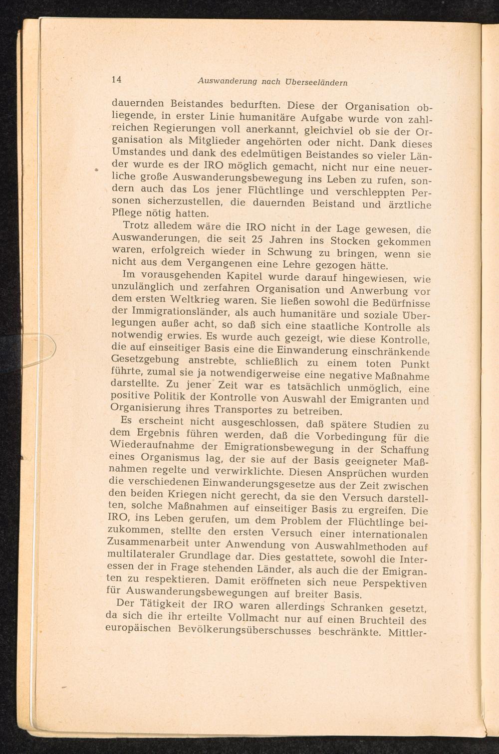 PDF  Zweiter Teil: Die Erfahrung der IRO auf dem Gebiete der Auswanderung