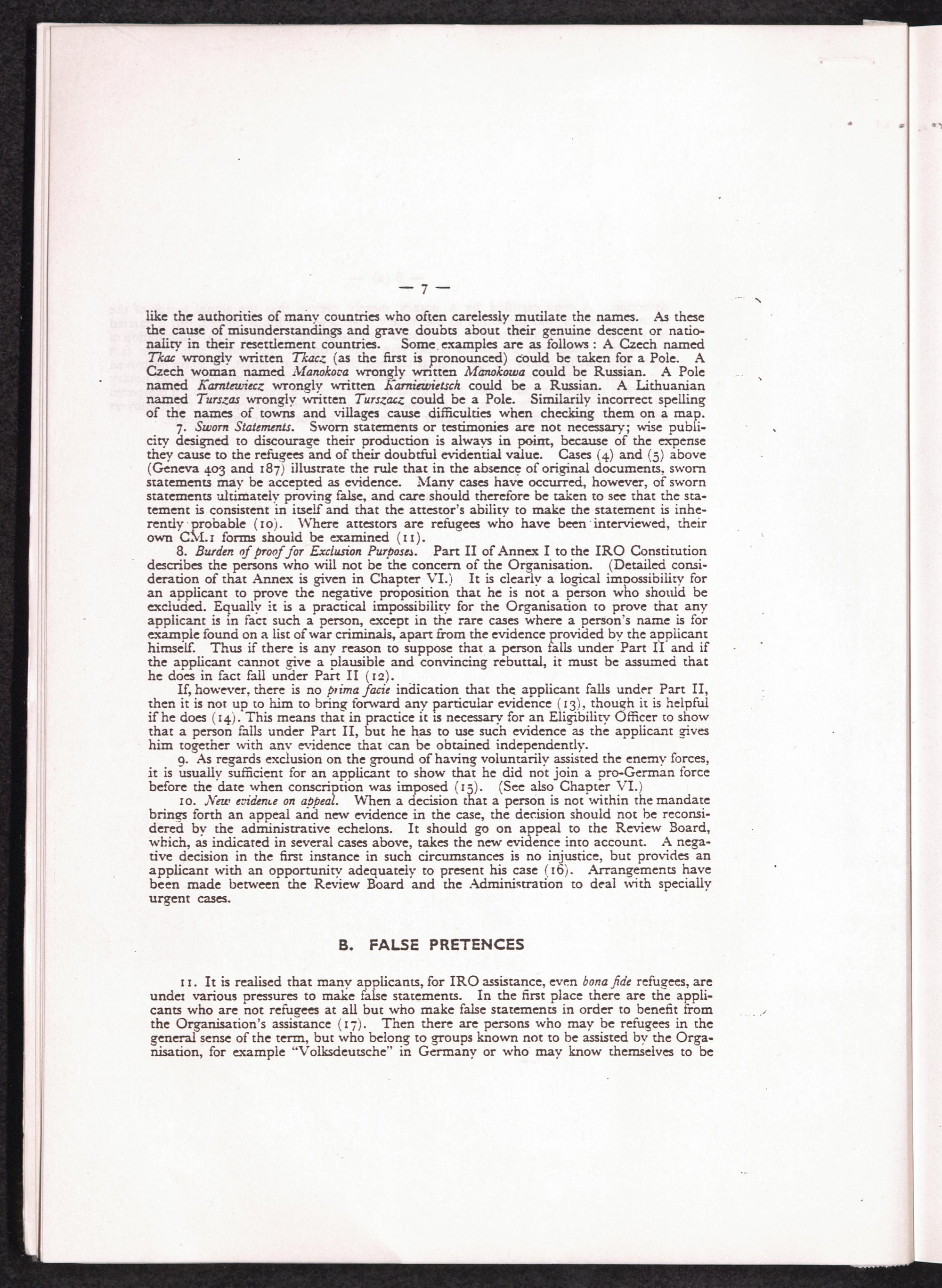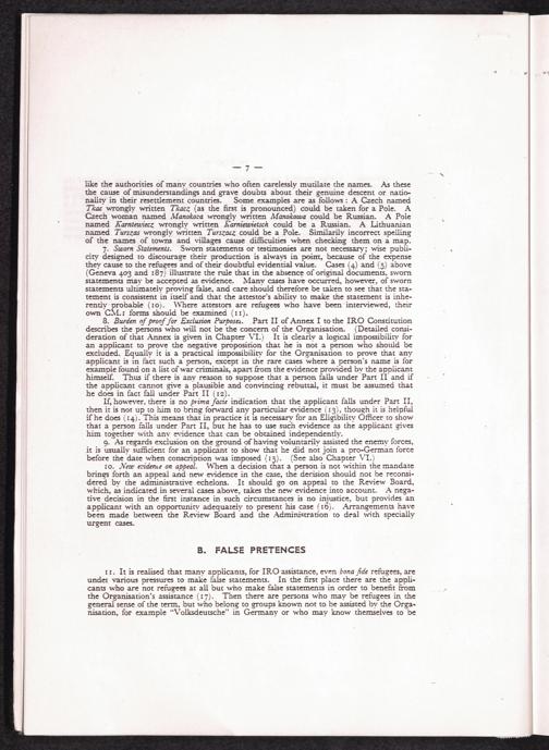 Manual for Eligibility Officers / International Refugee Organization